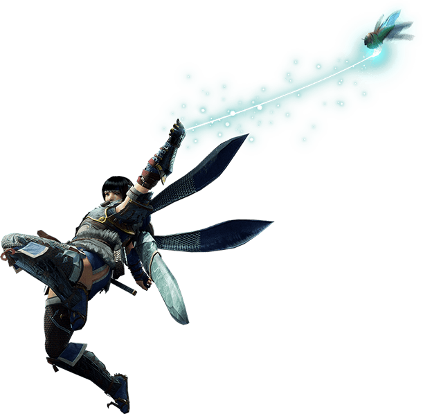 지시한 방향으로 날아가 특수한 '벌레철사'로 헌터를 끌어당겨 주는 '밧줄벌레'를 통해 사냥은 진화한다. 험난한 절벽과 바위 밭 등 길이 없는 장소로 고속 이동할 수 있는 것은 물론, 무기 종류별로 특색 있는 공격과 함께 사용하여 새로운 헌팅 액션을 구현할 수 있다! '밧줄벌레'나 '벽 달리기'를 구사하여 필드를 달리자.