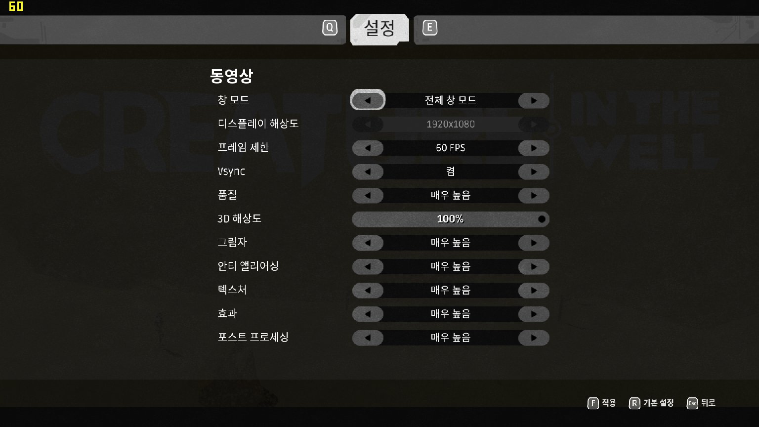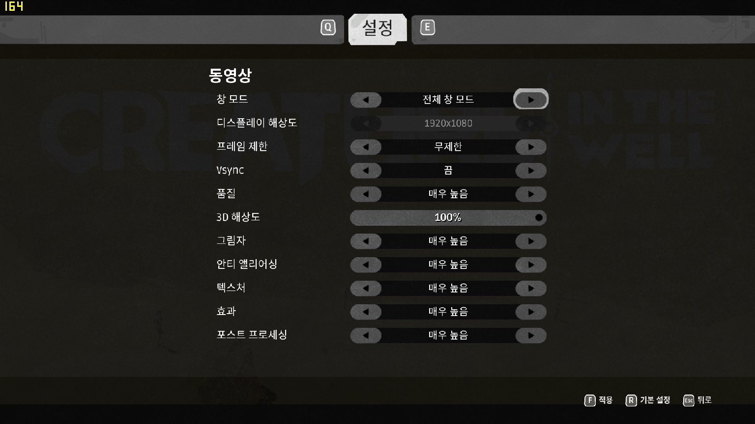 참고로 게임이 기본으로 프레임 제한이 풀려있어 프레임이 무제한으로 나오는데요. 동영상 설정에서 「프레임 제한 60FPS」, 「VSYNC '켬'」과 같은 옵션으로 프레임 제한을 걸면 그래픽 카드 과부하를 줄일 수 있습니다~!