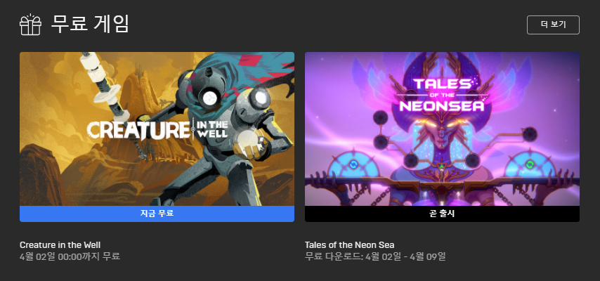 '크리쳐 인 더 웰'은 핀볼에게 영감 받은 핵 앤 슬래시 게임인데요. 플레이어는 마지막 남은 BOT-C 유닛이 되어 8개의 던전을 탐색하고, 강력한 장비로 업그레이드, 20종의 고유 아이템을 해금할 수 있으며, 공식 한국어 자막도 지원합니다. 또한 다음 주 무료 게임은 인간도 로봇이 공존하는 디스토피아를 무대로 한 2D 퍼즐 수사 어드벤쳐 게임 'Tales of the Neon Sea'입니다.