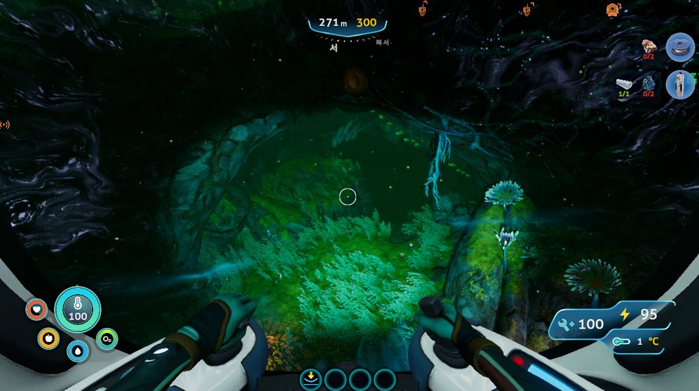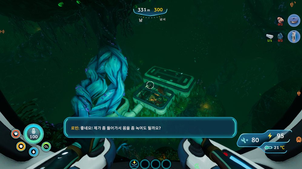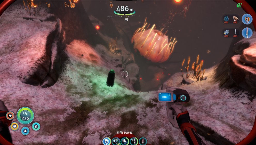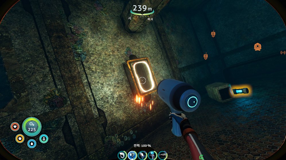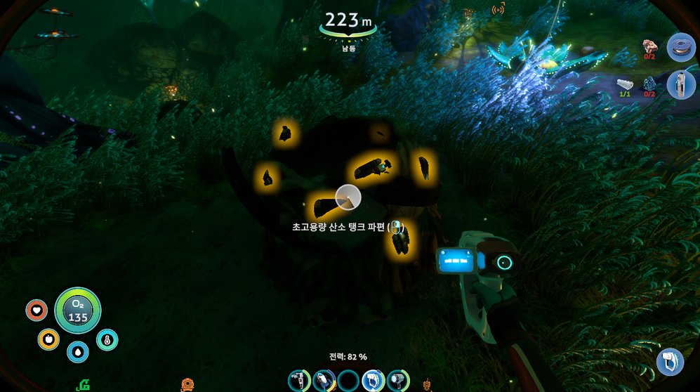 - 구멍으로 이동하면 바다 원숭이의 둥지에서 초고용량 산소탱크 파편(총3개) 및 다양한 파편들을 찾을 수 있다.
