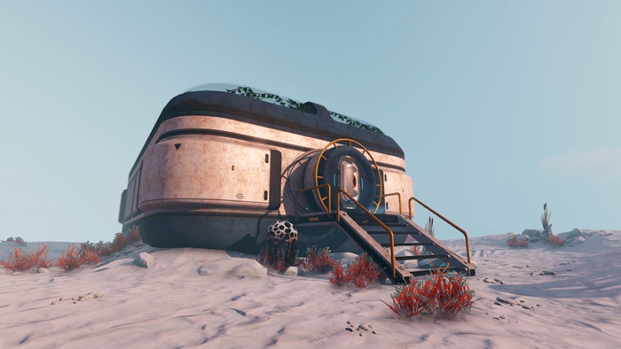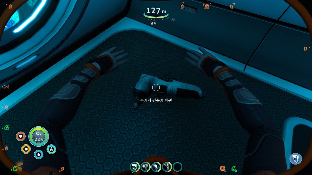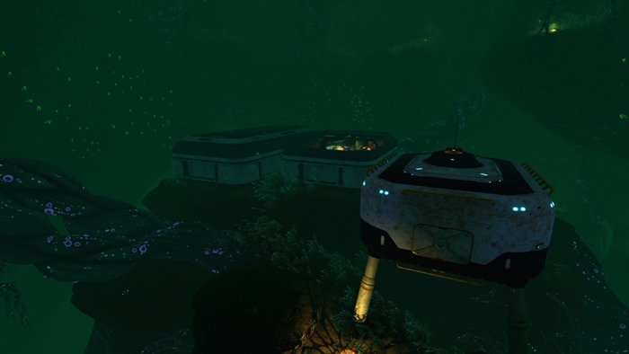 - 다시 구명 포드로 돌아와 '휴대식 탑승물 제작기'를 제작해 물 위에 띄우고 거기서 시트럭을 만들자. 그리고 '시트럭 수심 업그레이드 MK1'도 제작하여 시트럭 해치 부근의 모듈을 통해 장착하자. 이후 '주거지 건축기'를 만들고 장비해 '다목적실'과 입구 '해치'를 건설하고, 지붕에 '태양광 패널'을 설치하여 전기를 공급하자. '다목적실'에 들어가 '제작기', '배터리 충전기', '보관함', '아쿠아리움', '작업대' 등을 설치하자.