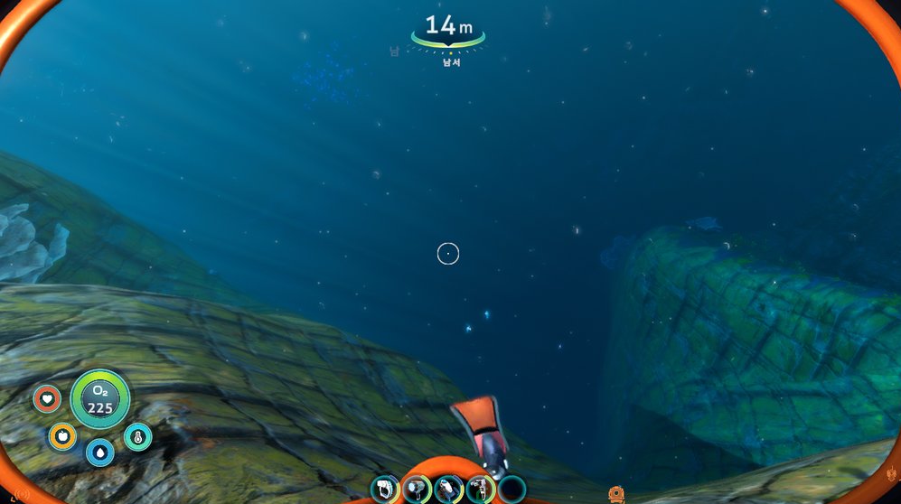 - 행동 범위를 넓히자 - 게임을 처음 시작한 구명 포드가 있는 지역은 수심 50m의 '얕은 트위스티 브릿지(Shallow Twisty Bridges)'라고 불리는 해역(Biome, 생물 군계)이다. 게임에는 다양한 지상 생물 군계, 수중 생물 군계, 수중 동굴 생물 군계가 있다. 처음에는 구명 포드 근처에서 생선과 광물을 채취하고 칼, 스캐너 등의 기본 장비를 만들자. 탐색 중 중요한 위치나 장소를 발견하면 신호기를 설치해 표시해두고 게임에는 따로 미니맵이나 지도가 없기 때문에 미아가 되지 않도록 델타 섬이나 구명 포드의 위치에서 자신의 현재 위치나 방향을 파악하자. 나중에 신호기(비콘)이나 나침반을 제작할 수 있게 되면 좀 더 알기 쉬워진다.