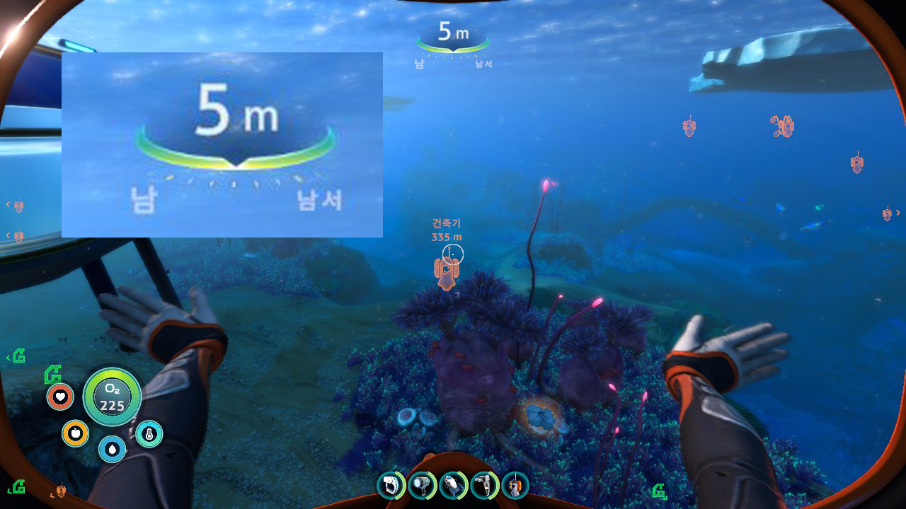 공략에 언급한 장소에 가려면 나침반 위치를 맞추고 해당 미터까지 직진으로 쭉 가면 된다. 자신이 온 거리는 뒤돌아서 구명 포드 마크를 확인하면 자신과 구명 포드간의 거리를 알 수 있다.