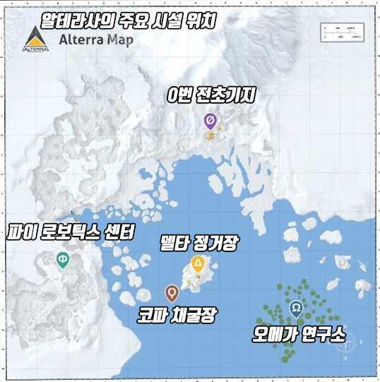 - 전초기지 제로는 구명 포드에서 북동쪽으로 가면 바다 얼음과 벽이 막고 있는 곳에서 벽을 따라 오른쪽으로 계속 가다 보면 수면 위로 부상할 수 있는 곳이 나온다. 거기서 길을 따라가면 전초기지가 나온다.