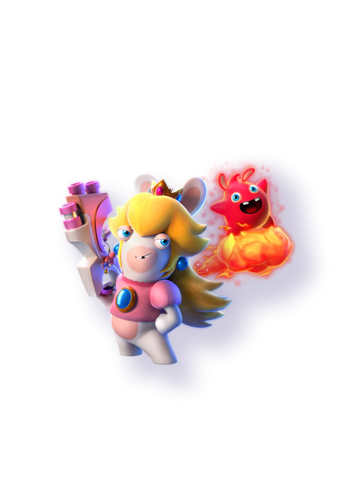 - 래비드 피치 - 카리스마 있고, 유행에 민감하며, 앙큼하고, 사교적인 영웅. 언제 어디서나 완벽한 셀카를 찍고, 마리오의 주의를 끌고 싶어 한답니다. 이 소셜 미디어 "스타"는 팀원을 위해 숙련된 전사나 치유사가 될 수도 있어요.