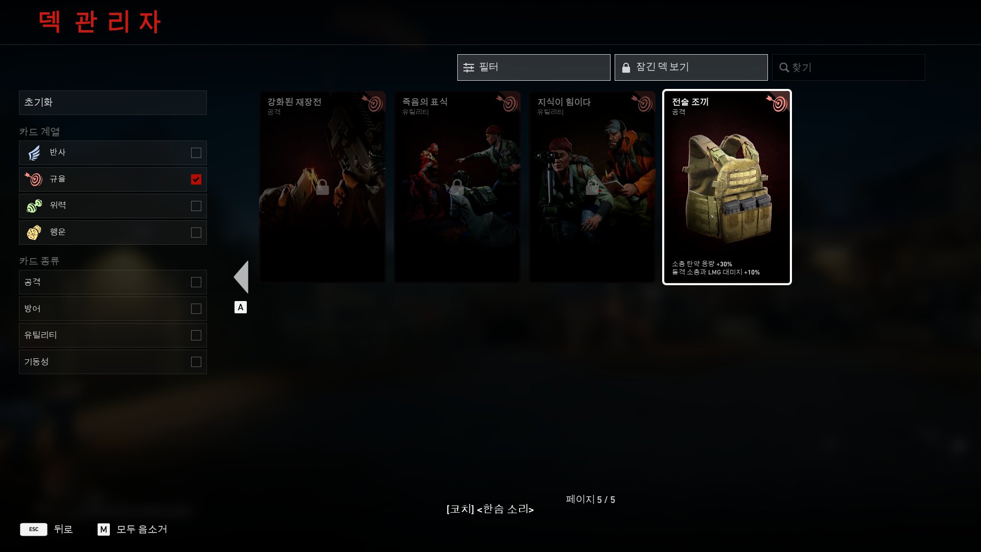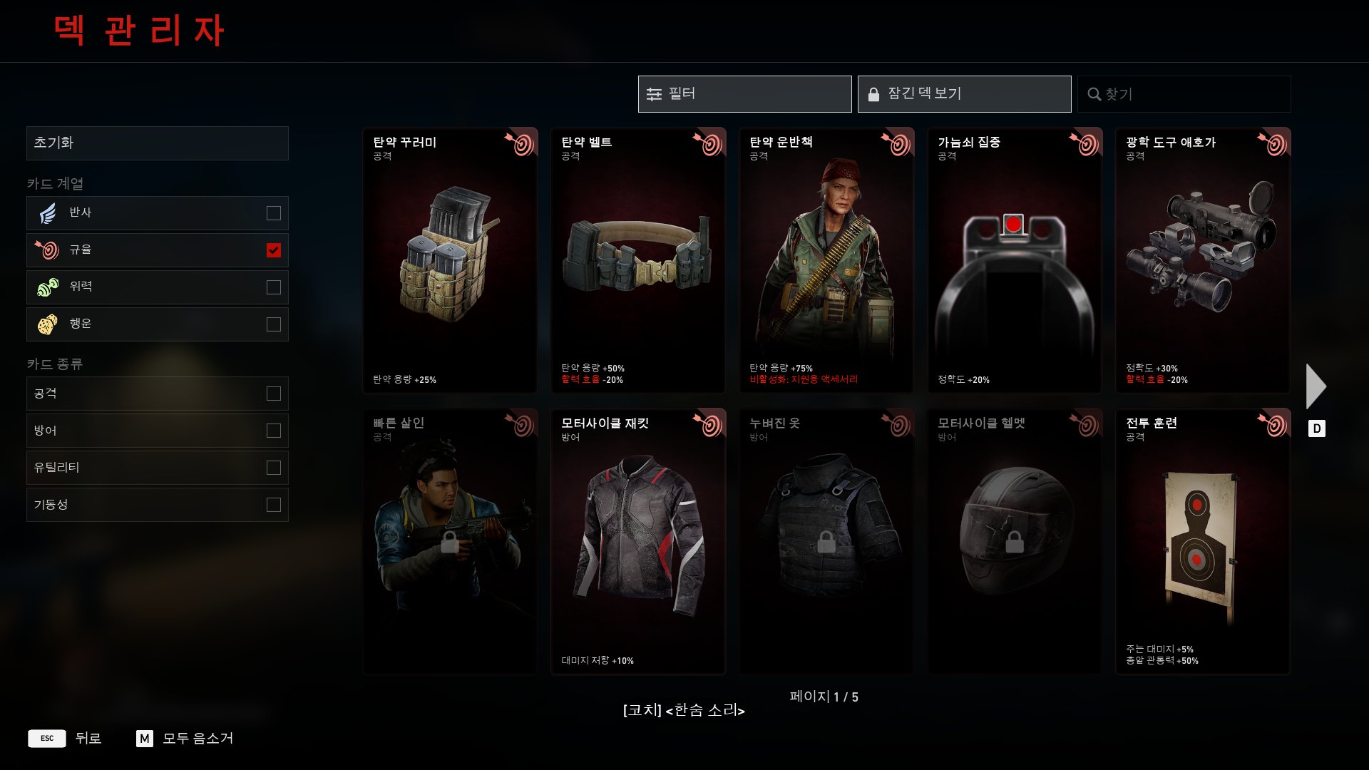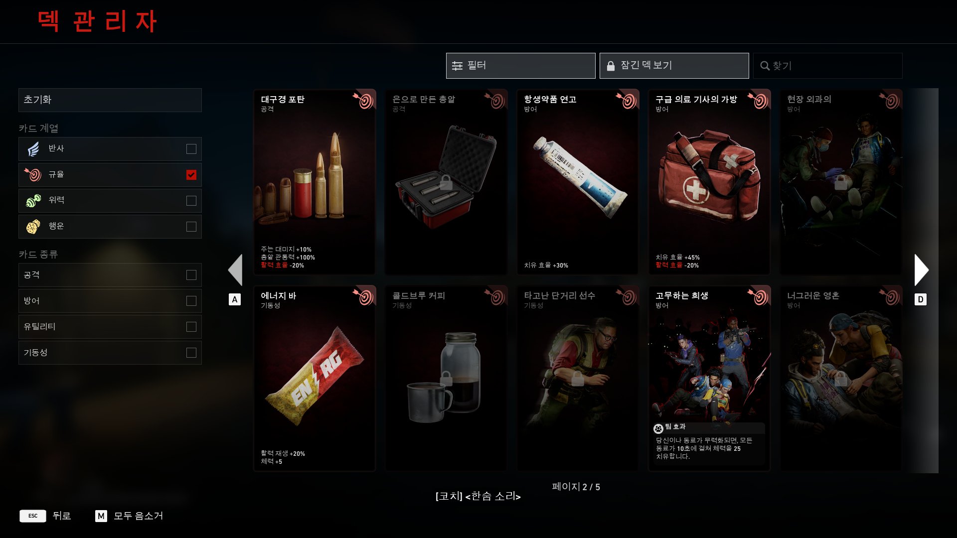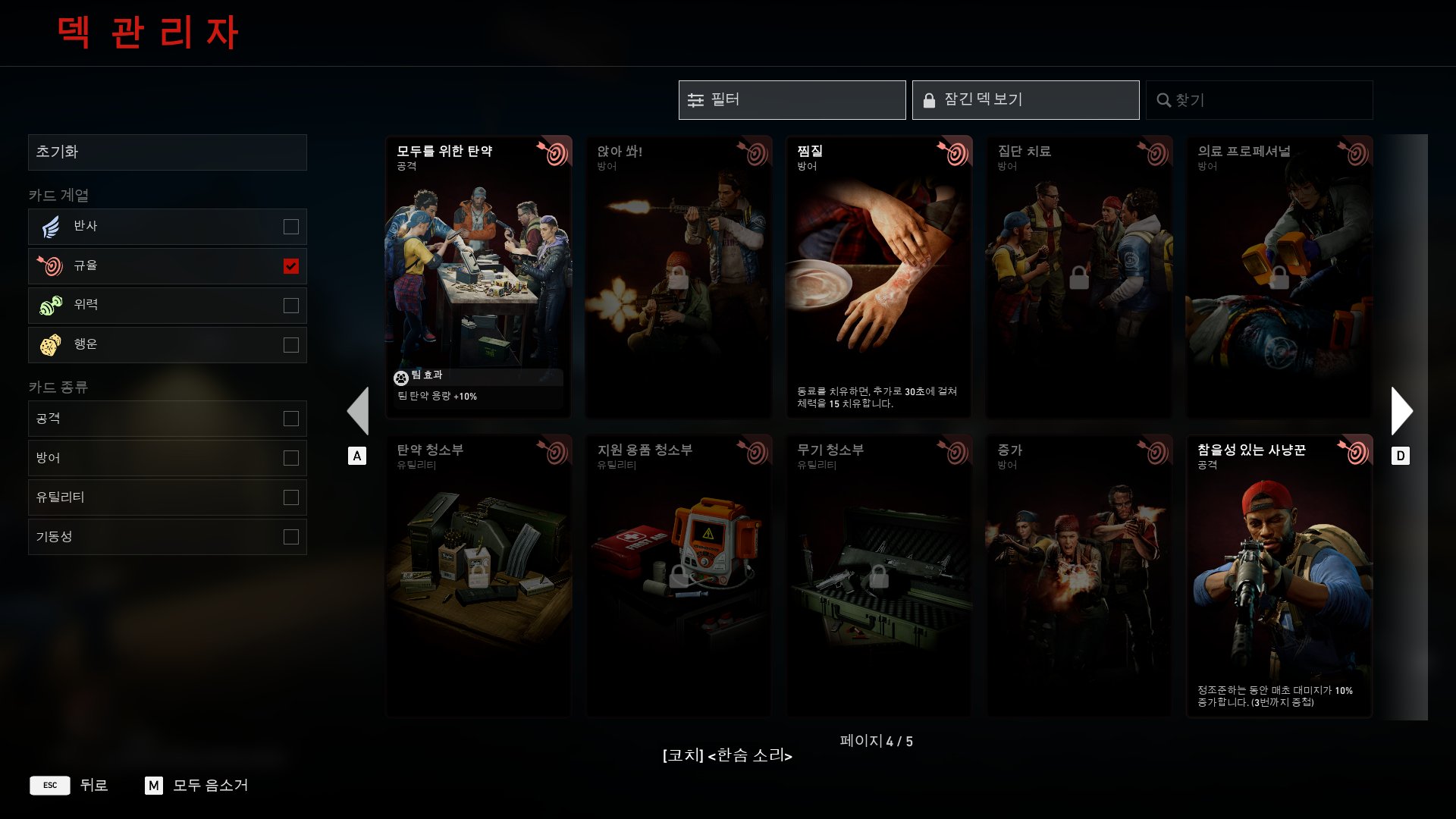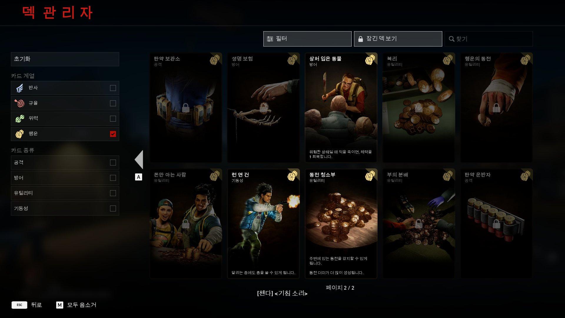 ■ 모든 활성 덱 카드(반사, 규율, 위력, 행운) 목록