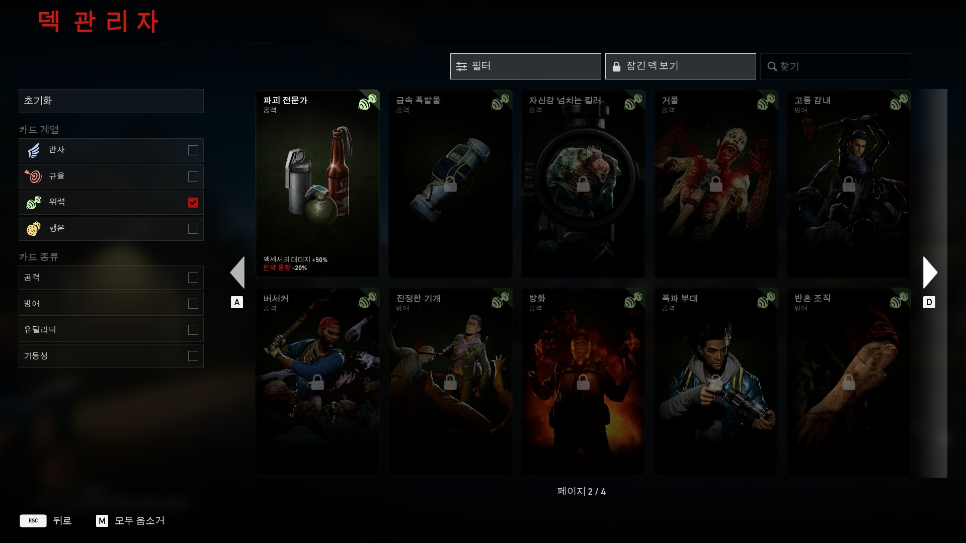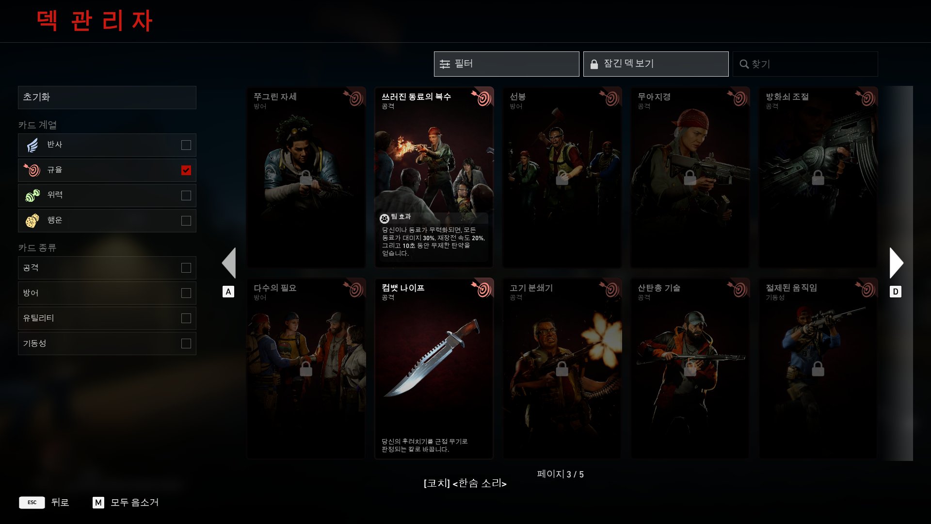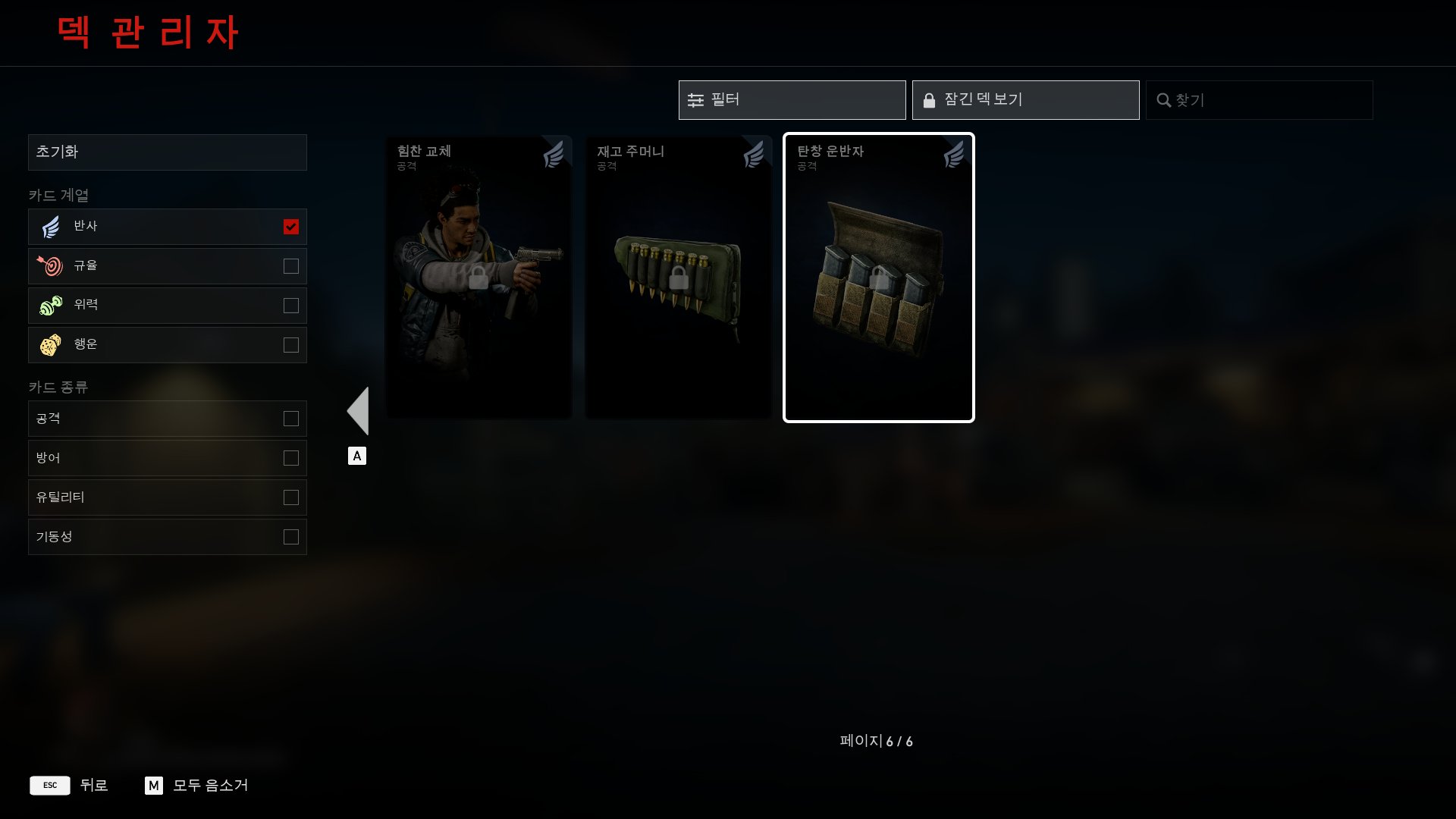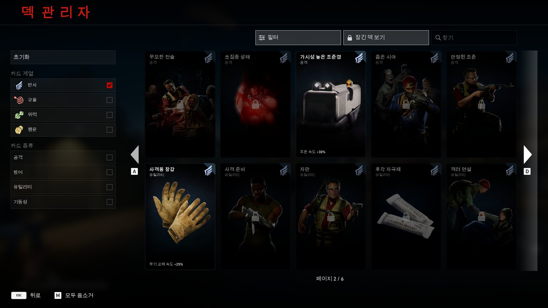 ■ 모든 활성 덱 카드(반사, 규율, 위력, 행운) 목록