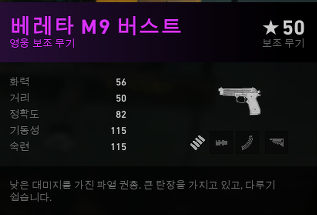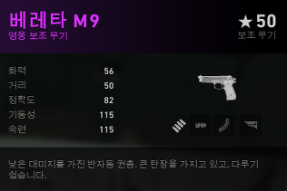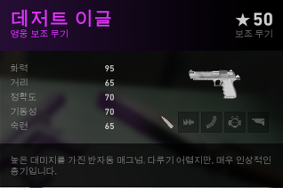 - 권총: 데저트 이글(저격소총탄약 사용), 매그넘(소총탄약 사용)