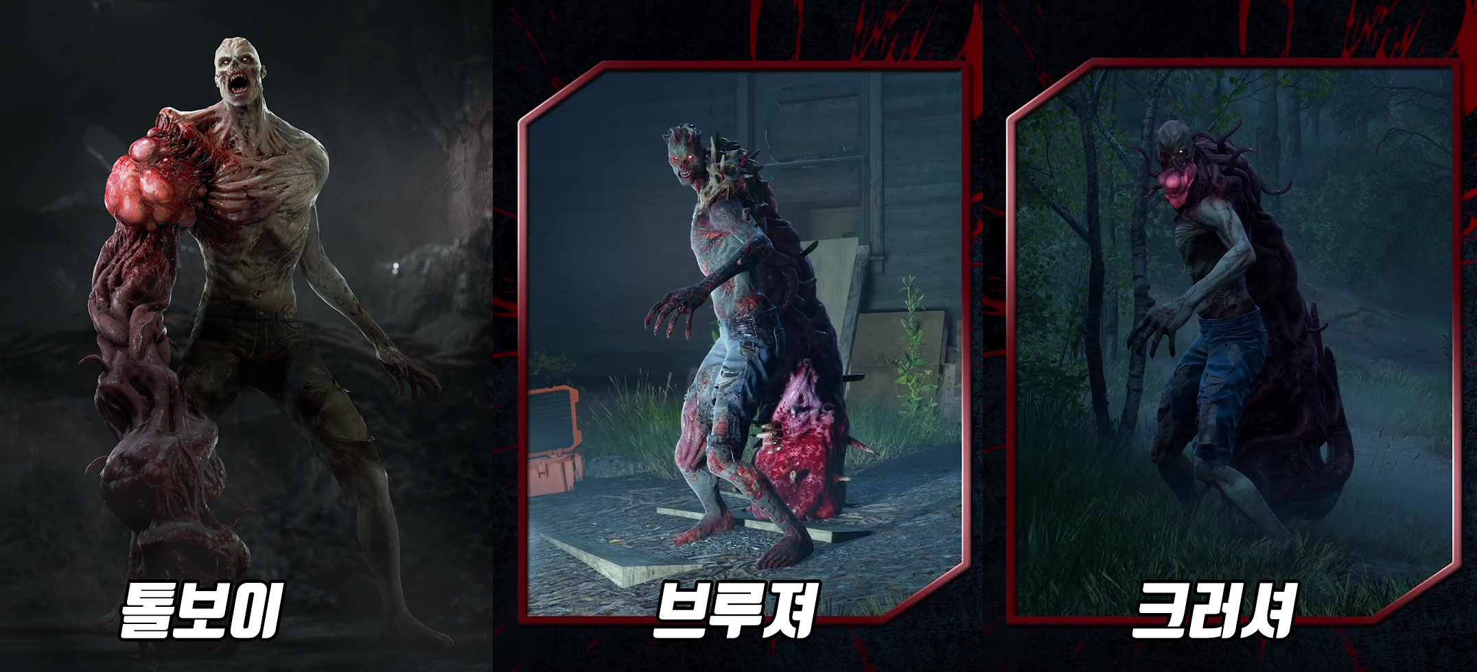 - 톨보이 돌연변이, 브루져(약점: 어깨) - 플레이어에게 접근해 거대한 오른팔으로 보다 광범위한 범위 공격으로 주변을 계속 강력하게 내려친다. 강력한 범위 공격이기 때문에 아군들이 뭉쳐있고 후퇴할 곳이 없으면 위험하므로, 흩어져서 어깨 약점을 노리자.