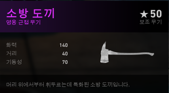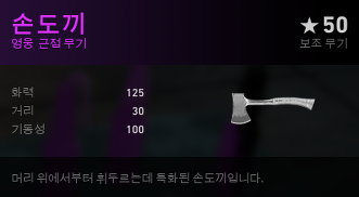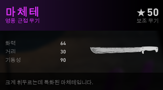 | 컴뱃 나이프 | 공격 | 후려치기를 근접 무기로 판정되는 칼로 교체. |
