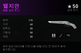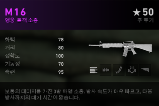 | 빠른 살인 | 공격 | 정확도 +50% 조준사격 비활성화 |