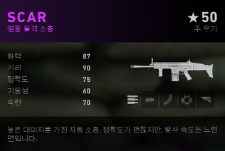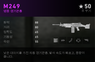 - 소총: AK47, SCAR, LMG RPK, LMG M249