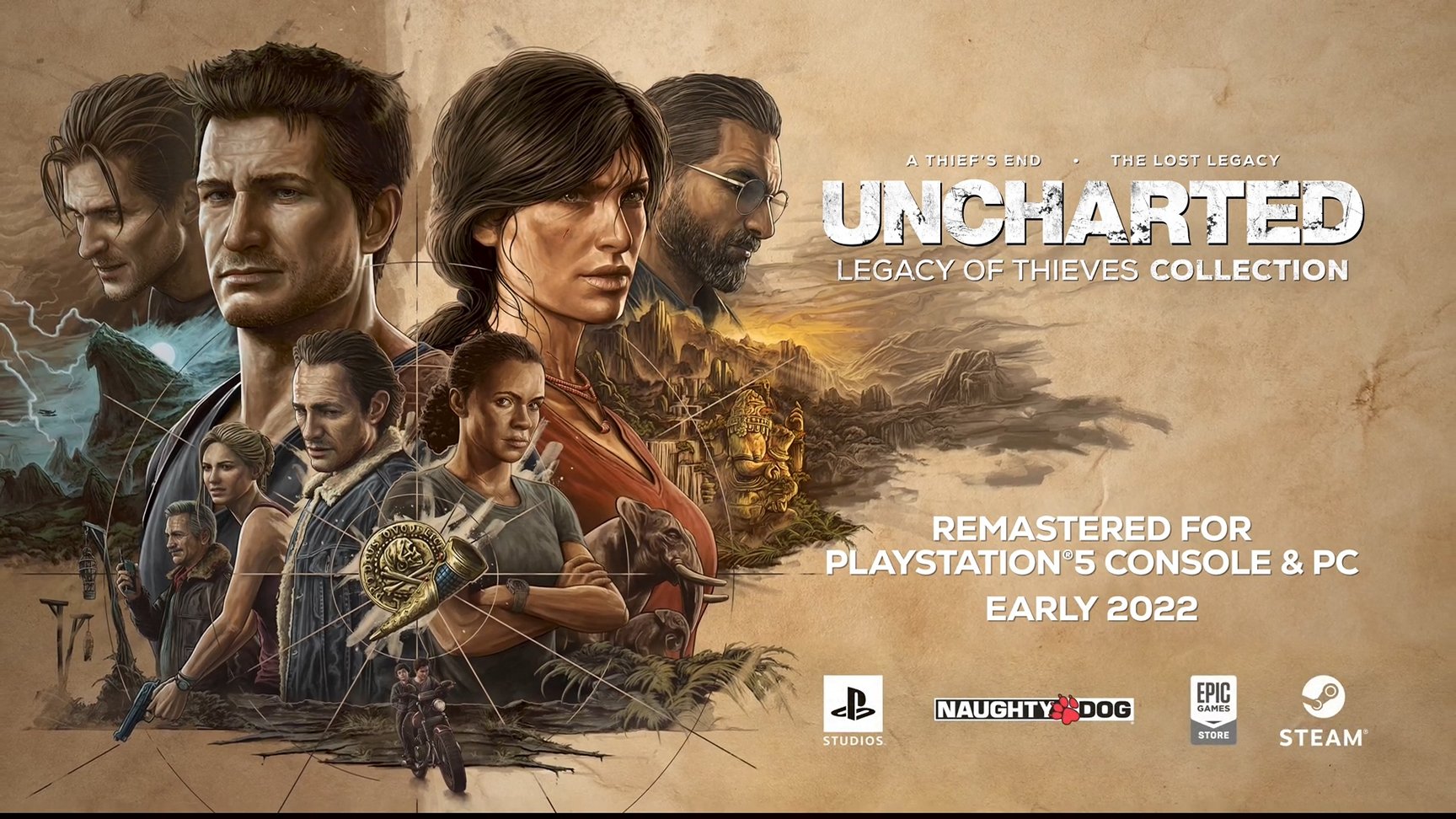 소니(SIE)가 배급, 너티독이 개발한 3인칭 액션 어드벤쳐 '언차티드 4' + '언차티드: 잃어버린 유산' 리마스터 합본판 < 언차티드 레거시 오브 시브즈 콜렉션 >이 2022년 1월 28일 PS5로 출시될 예정이