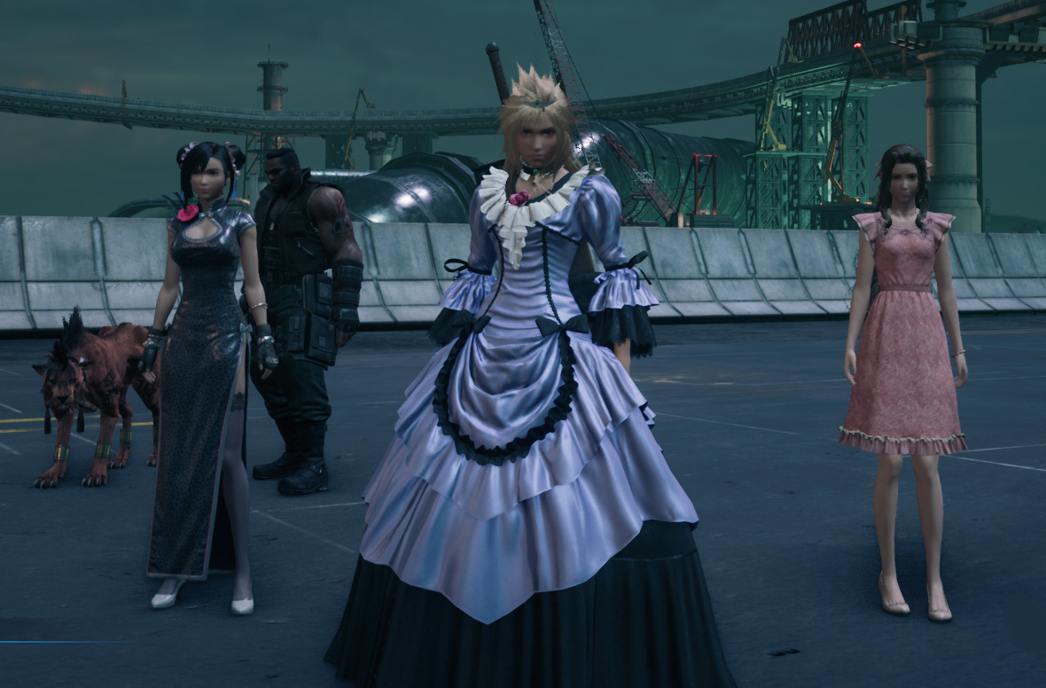 - 의상 교체 모드 - 클라우드, 티파, 에어리스의 복장을 게임 내 이벤트로 등장했던 드레스 의상으로 교체해주는 모드입니다. 캐릭터마다 3개씩 총 9개 의상이 포함되어 있고 인게임, 컷신 모두 잘 적용됩니다.