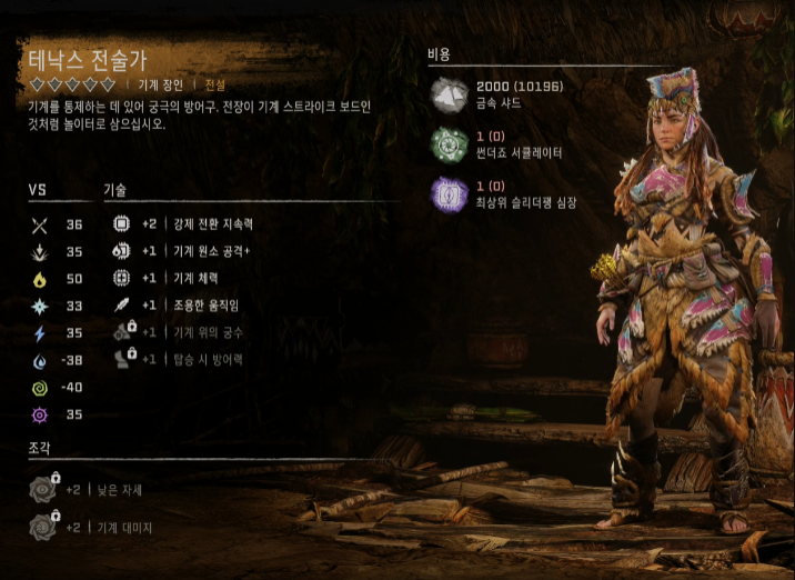 - 최강의 전설 갑옷 '오세람 숙련공'얻는 법 - 케루프와 대화해서 「케루프의 수확품 무한회사」퀘스트를 받고 4개의 지역의 수확품 계약을 완료(특정 기계 부품 요구)하고 다시 케루프에게 돌아오면 오세람 전설 갑옷을 얻을 수 있다. 근접 빌드에게 유용한 갑옷으로 솟구치는 용기 스킬인 「방어막 전개」와도 조합이 좋다.