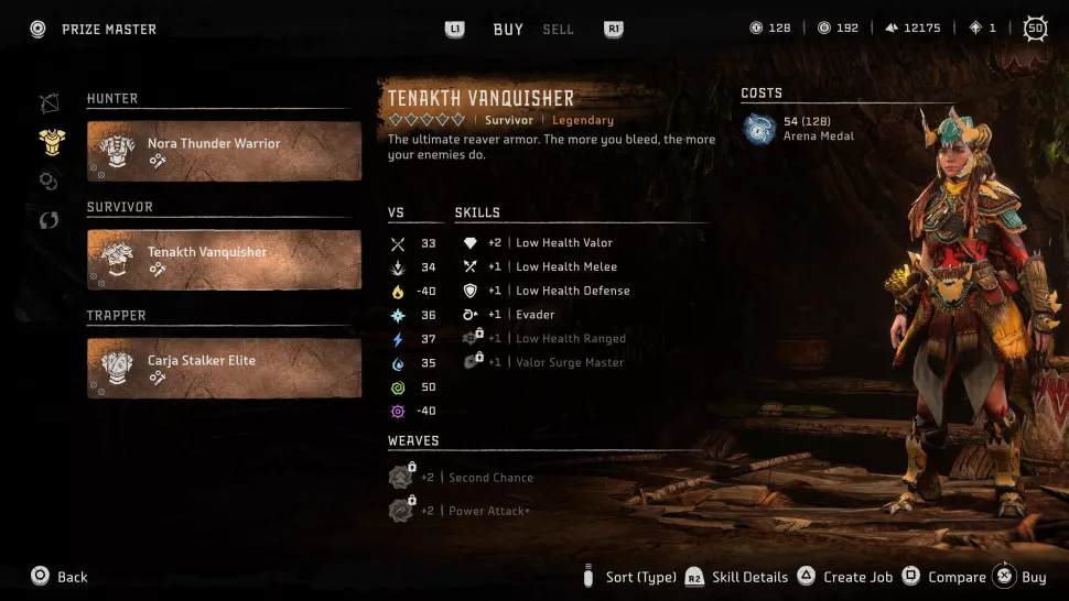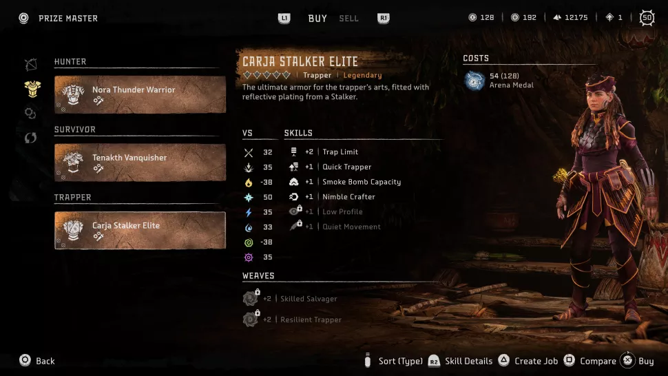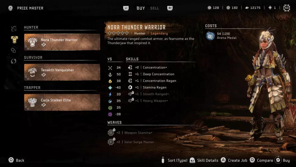 「노라 천둥 전사」, 「테낙스 정복자」, 「카르자 스토커 정예사냥꾼」은 투기장 메달로 구입