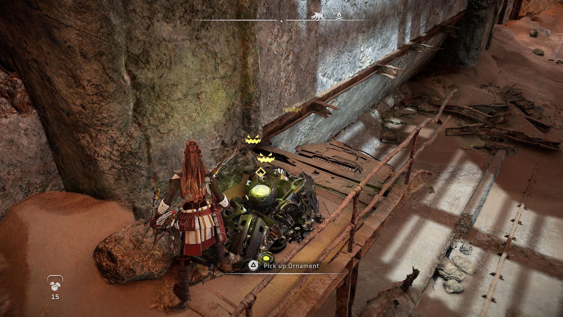 - 폐허 유적 속에는 풀 캐스터 등의 특수 장비 사용, 상자를 떨어뜨리는 등 퍼즐/기믹이 가득하다. 유적에 들어간 후에는 주변을 둘러보거나 포커스를 사용하여 길을 찾아보자.