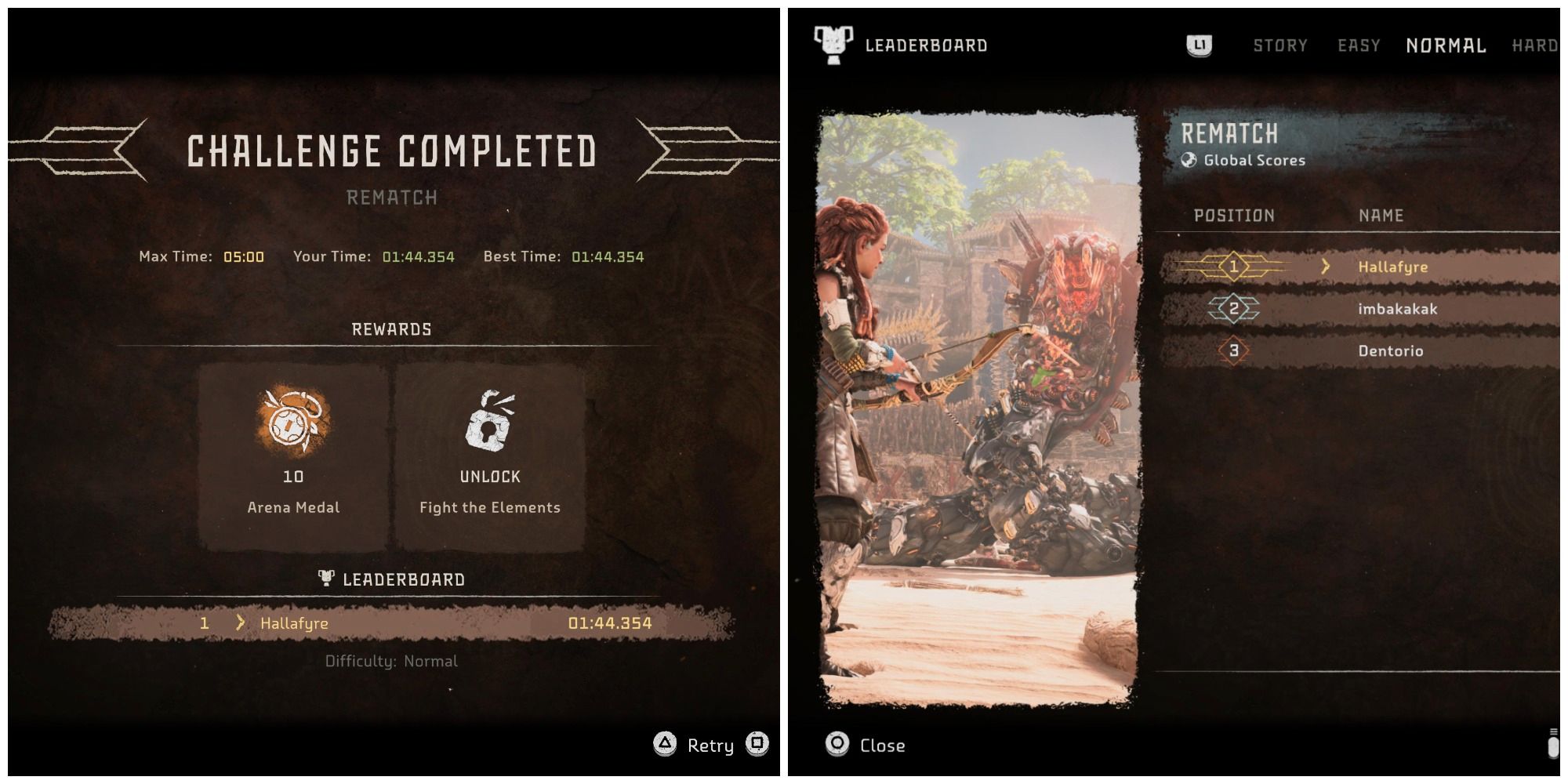 정착지(마을)에서 발견할 수 있는 도전 모드.(리더보드 포함) |