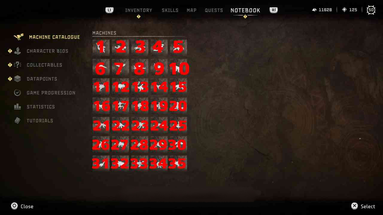 - 최종 보스 스캔 주의점 - '스펙터'와 최종 보스 '스펙터 프라임'은 월드맵에서는 등장하지 않고 스토리 진행 중에만 스캔할 수 있다. 만약 최종 보스전에 죽으면 마지막 보스를 다시 스캔해야 할 것. 마지막 메인 스토리를 끝낸 후에 노트->기계 카탈로그를 확인하여 제대로 등록됐는지 확인하고 등록이 안 됐다면 다시 마지막 저장 지점을 로드하여 스캔을 시도하자.