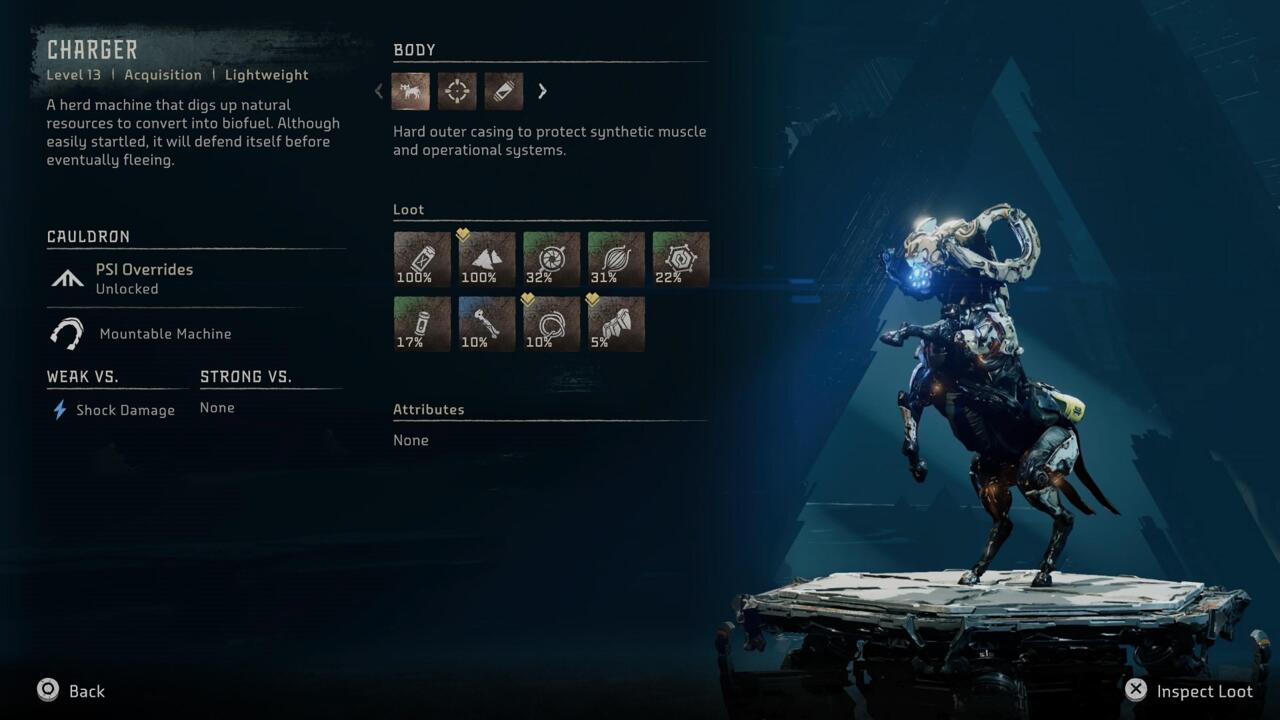 | 17. 커럽터 | 커럽터는 다른 기계와는 달리 동물 기반이 아닌 어떤 목적을 달성하기 위해 만들어진 고대 시대의 전쟁 기계. 민첩하고 강력한 근거리/원거리 공격을 사용한다. | 변종 없음 |