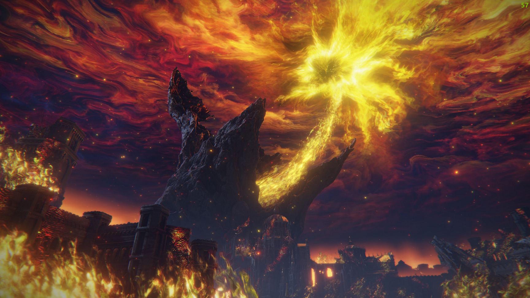 세 손가락의 미친 불을 얻은 빛바랜 자가 황금수를 불태우고 혼돈과 광란의 제왕이 되는 엔딩. 한편, 한쪽 눈을 뜬 멜리나가 그를 뒤쫓는다.