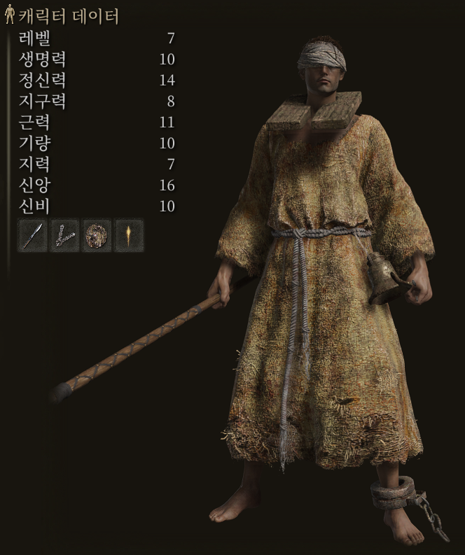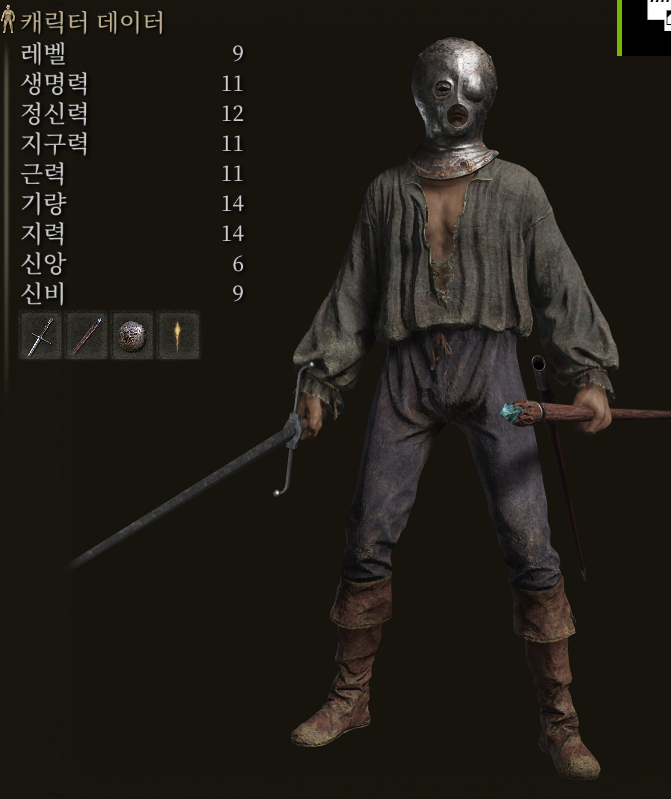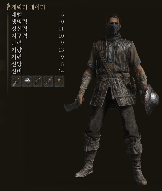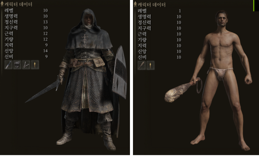 - 근접특화는 근력/기량, 마법특화는 지력(마술)/신앙(기도)을 다른 스탯보다 높게 올려 딜을 높이는 것을 추천.