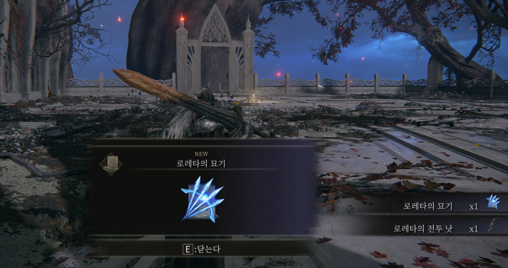 • NPC 콜린 퀘스트를 완료하고 「완전률의 수복 룬」 획득. • 최종 보스 전투 후에 「완전률의 수복 룬」을 사용. |