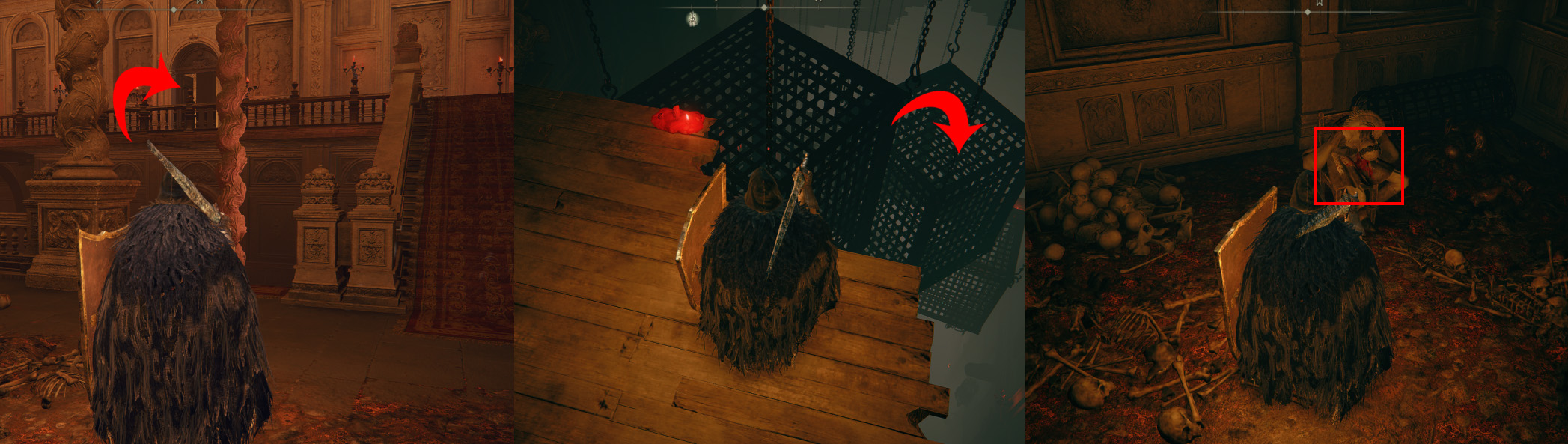 - 첫 번째 촛불은 정면 1층에서, 두 번째는 근방 사다리로 올라가면 있고, 세 번째는 정면에 바로 보이며, 지붕위로 타고 가면 입수, 마지막은 왼쪽 결계 가장 끝 부근에 사다리를 타고 올라가면 있다.