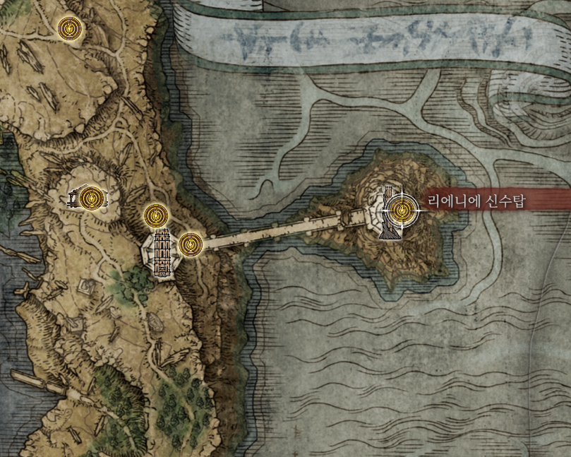 - 10. 리에니에 신수탑에서 죽음의 주혼 입수 - 이제 「죽음의 주혼」이라는 아이템이 필요한 데, 이전에 라니 퀘스트 진행 중에 받은 「카리아의 뒤집힌 동상」을 호수의 리에니에 동쪽에 있는 카리아 서원에 사용하자. 새로 생긴 길을 따라 이동해 문을 열면 리에니에 신수탑에 들어갈 수 있고, 꼭대기에서 「죽음의 주혼」 입수.