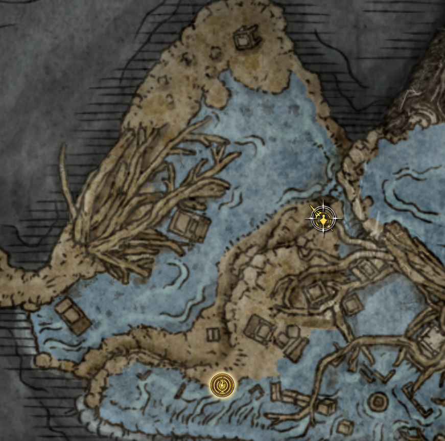 - 6. 숨겨진 지역 '깊은 뿌리 밑바닥' - 앞에 축복을 활성화하고 석관으로 들어가면 비밀 지역 '깊은 뿌리 밑바닥'이라는 곳으로 갈 수 있다. 앞에 축복을 활성화하고 앞의 몬스터를 잡으면 「화신의 의장(특대형 망치)」 입수. 오른쪽 나무 가지를 타고 이동. 절벽에서 축복이 있고 나무 아래를 통과하면 이 지역의 「지도 조각」을 발견할 수 있다.
