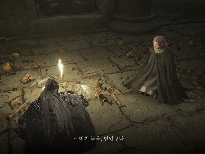 오래된 이야기네. 그래, 기억하고 말고. 차가운 안개 낀 밤이었지. 죽음의 룬이 도둑맞고, 황금의 고드윈이 처음으로 죽은 데미갓이 되었을 때 여왕 마리카는 미쳤겠지. 파쇄전쟁은 어둠뿐이야.