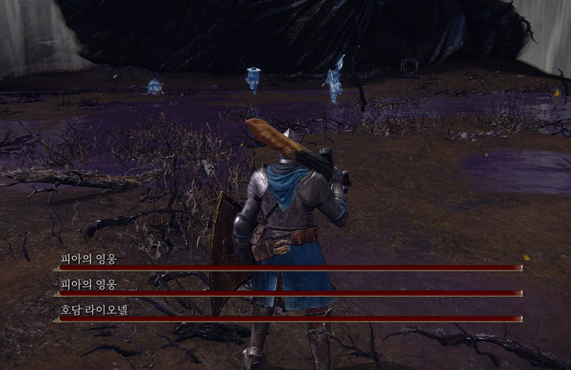 - 12. 피아 퀘스트 완료 - 포르삭스를 처치하면 「LEGEND FELLED)」가 뜨고 사룡의 추억 획득, 피아는 죽은 것으로 보이며 또 다른 엔딩을 볼 수 있는 「죽음의 왕자의 수복 룬」을 입수, 축복에서 시간을 보내고 다시 피아에게 돌아오면 D의 동생이 피아를 죽인 것으로 보이고, 피아 장비 세트(머리,옷)를 입수할 수 있다. 다시 시간을 보내고 오면 「니뉘지 않는 쌍생아의 검」, 「쌍생아의 장비 세트」 입수