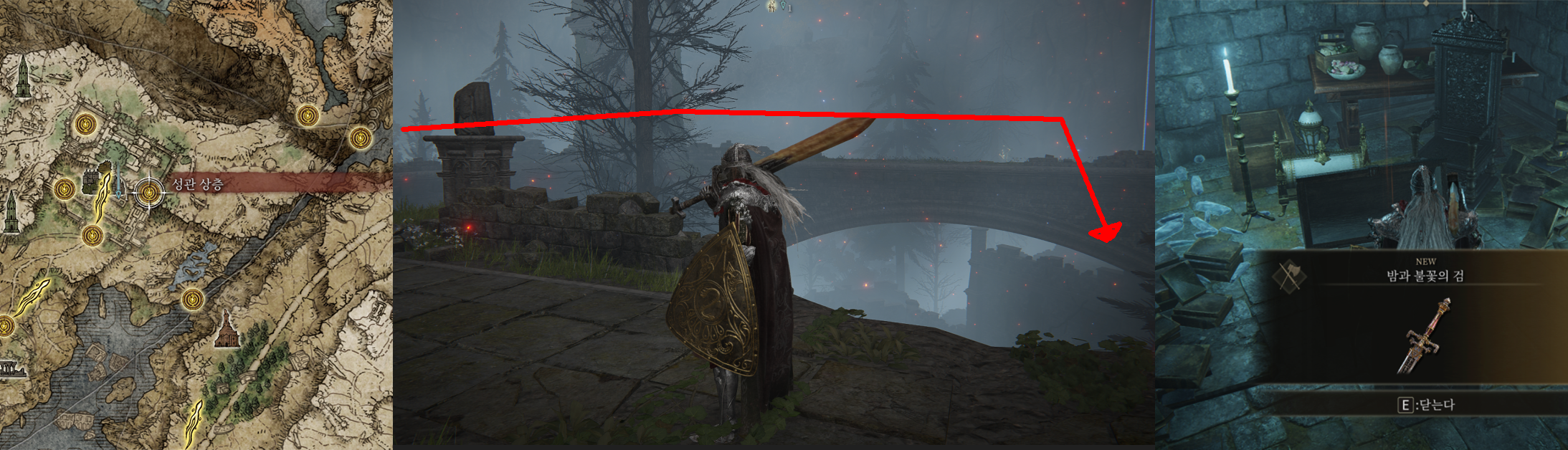 - 기본적으로 엘든링은 목표를 친절하게 가르쳐 주지 않고, 플레이어 스스로 탐색하면서 길을 찾아가야 하는 방식으로, 축복의 「빛의 입자」를 따라가면 메인 스토리를 진행할 수 있다.