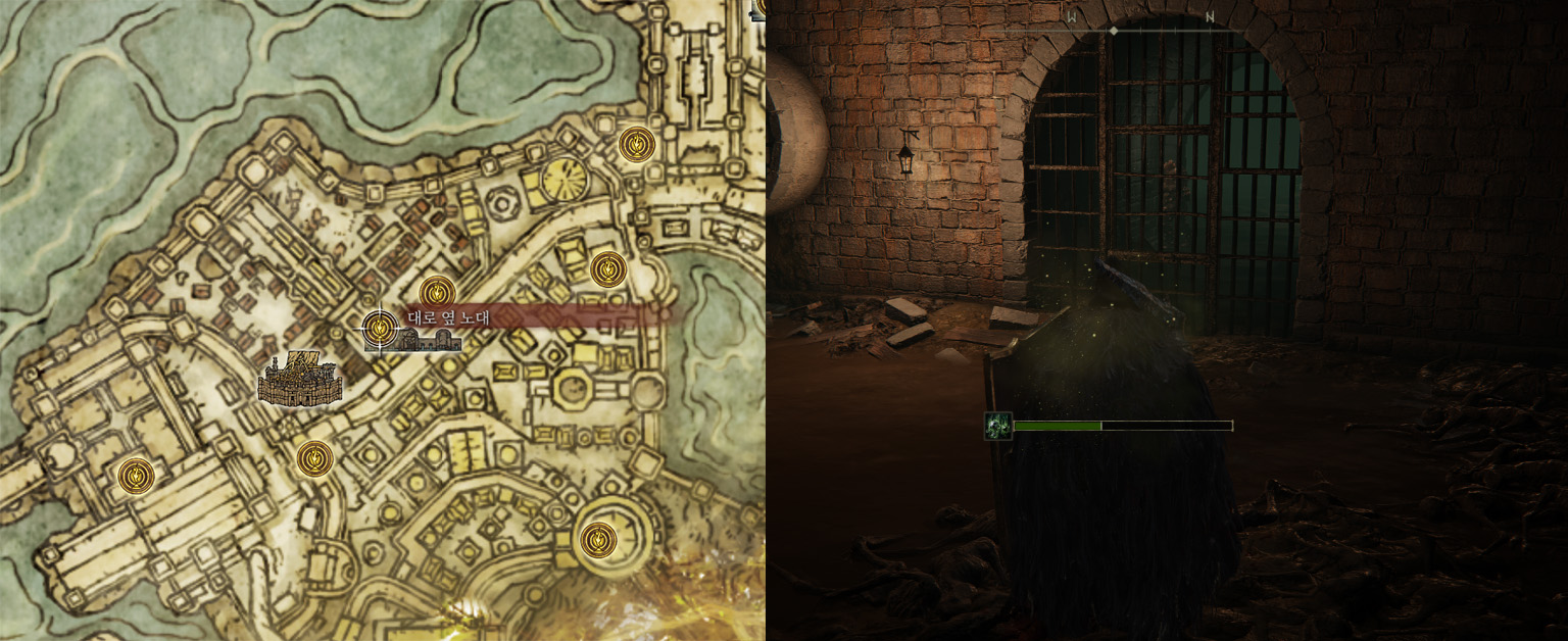 - 하수도관을 통해 이동하기 - 아까 지나온 다리 옆에 하수도관을 통해 이동, 점프해서 넘어가 하수도관 구멍으로 들어간다. 하수도관의 길은 상당히 복잡하고 잘못하면 똑같은 곳을 헤맬 수 있으니 주의.