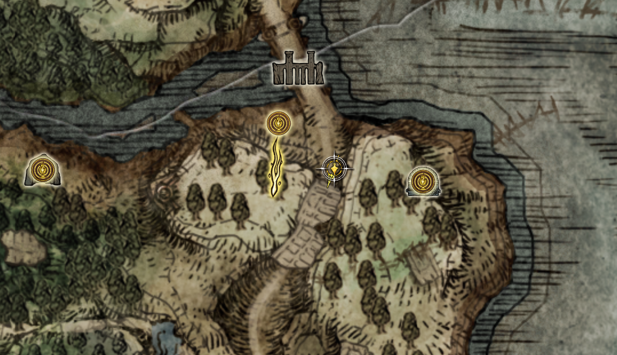 - 숨겨진 지역, 미켈라의 성수 - 거대한 나뭇가지들로 이뤄진 맵으로, 떨어지지 않게 조심히 북쪽으로 이동하자. 주변에 고룡암의 단석도 꽤 있고, 진주룡의 탈리스만(물리 제외 모든 저항 감소)도 입수. 진행하다 보면 더 강력한 로레타 보스가 등장한다. 처치하면 「기도: 로레타의 무기」, 「로레타의 전투 낫」 입수.