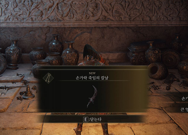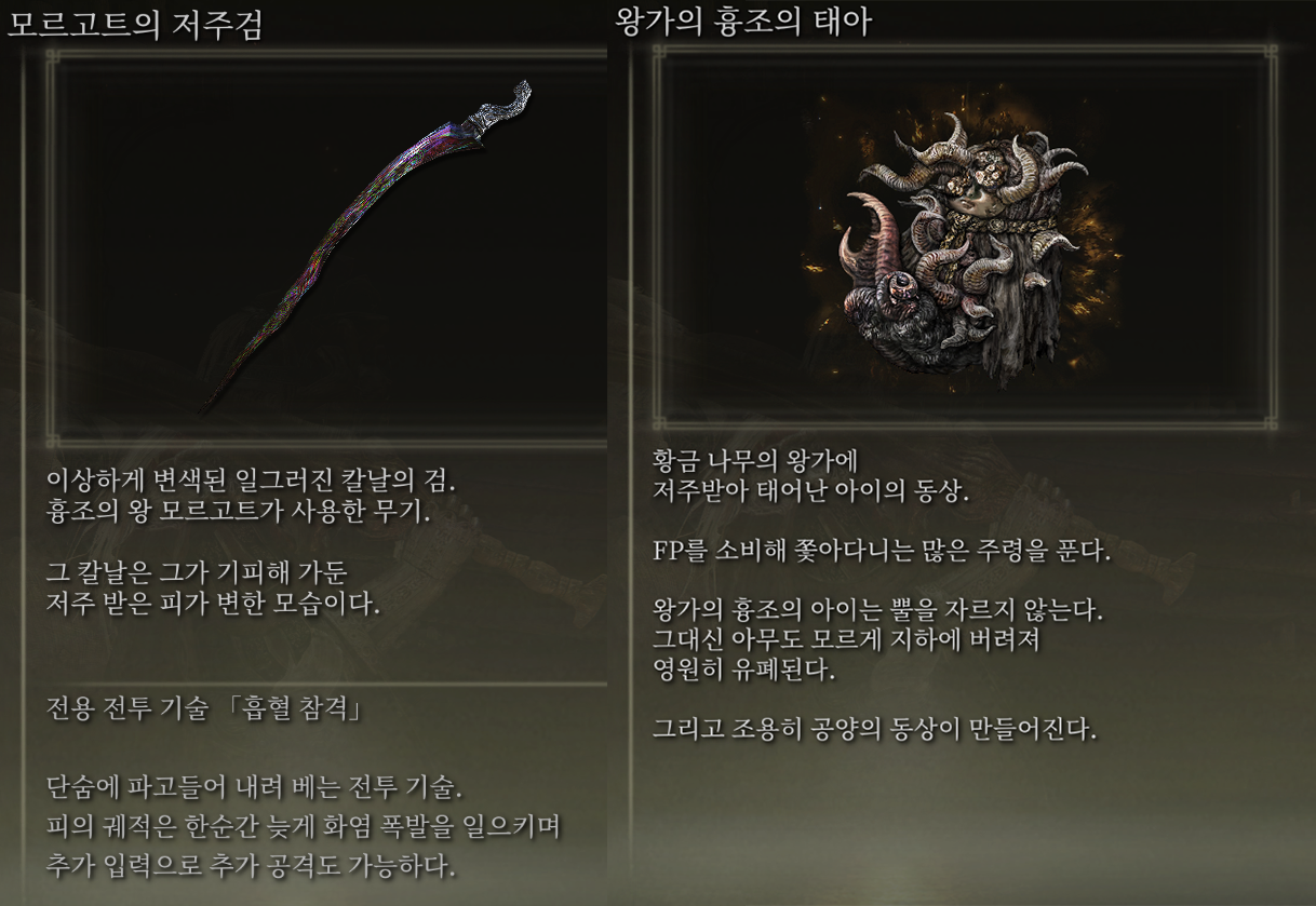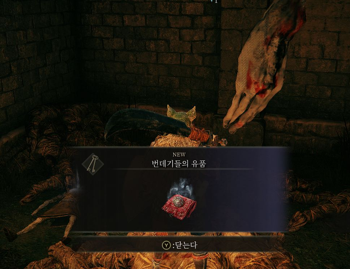 • 대변먹는 자 퀘스트를 완료하면 「흉악한 저주의 수복 룬」 획득. • 최종 보스 전투 후에 「흉악한 저주의 수복 룬」을 사용. |