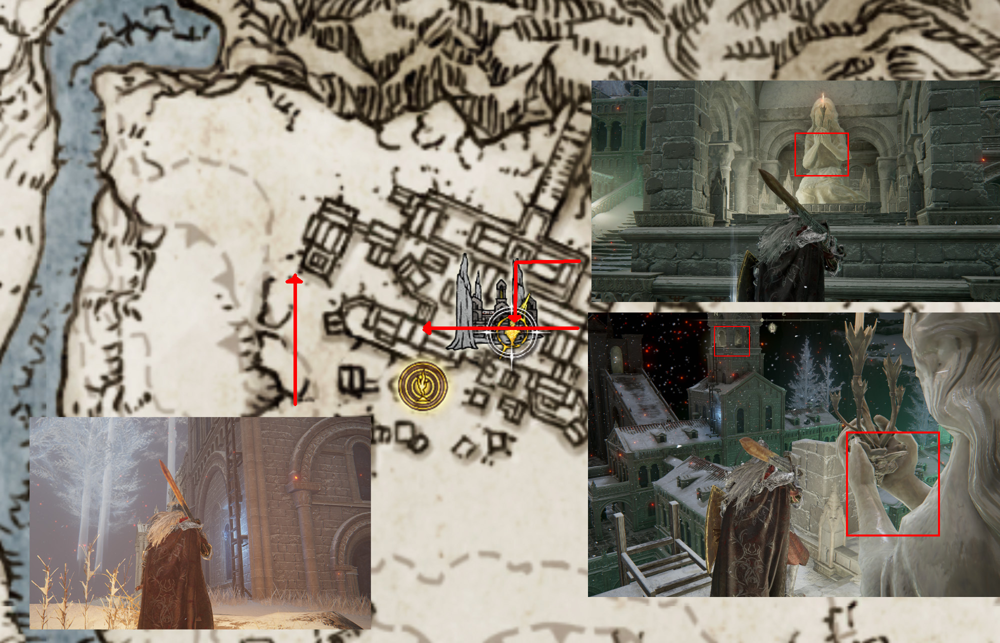 - 성수 버팀목 에브레펠 #1 - 구별된 설원에 있는 전례 거리 오르디나에서 4개의 촛불을 켜서 봉인을 뒤, 포탈을 타고 미켈라의 성수 -> 성수 버팀목 에브레펠로 이동. 「축복: 기도실」 기준으로 조금 전진한 뒤 큰 기둥 아래로 두번 떨어지면 방안에서 「모판의 저주」 입수.