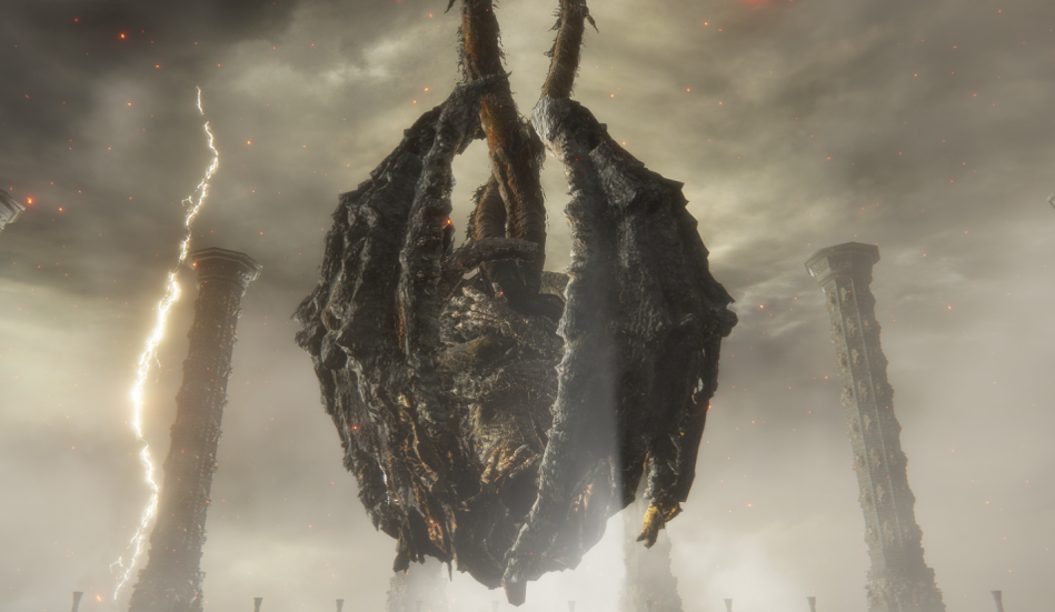 - 붉은 낙뢰를 사용하는 사룡 포르삭스 - 드래곤 브레스는 옆으로 피하고 즉사 게이지를 채우는 번개에 주의, 최대한 멀리 물러서면 피할 수 있다. 근접 발톱 3연속 공격이나, 공중으로 날기전에 잠시 으르렁 거리며 하늘에서 브레스를 쏘거나 땅으로 달려든다.
