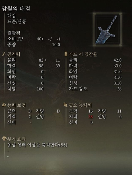 - 근력 A 기량 D의 무기의 경우 근력을 높히면 공격력이 상당히 올라가고, 반대로 기량을 올리면 공격력 상승이 적기 때문에 사용할려는 무기의 보정치를 보고 결정하는 것이 좋다.