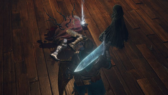 - 모판의 저주를 모아서 전달 - 다시 원탁으로 이동해서 그와 대화한 뒤 전에 하수도의 열쇠를 사용한 곳으로 가서 묶여 있는 자에게 「모판의 저주」 총 4개를 전달하면 또 다른 엔딩을 볼 수 있는 「흉악한 저주의 수복 룬」과 시간을 보낸 뒤 다시 가면 「흉조의 갑옷 세트」를 얻을 수 있다.