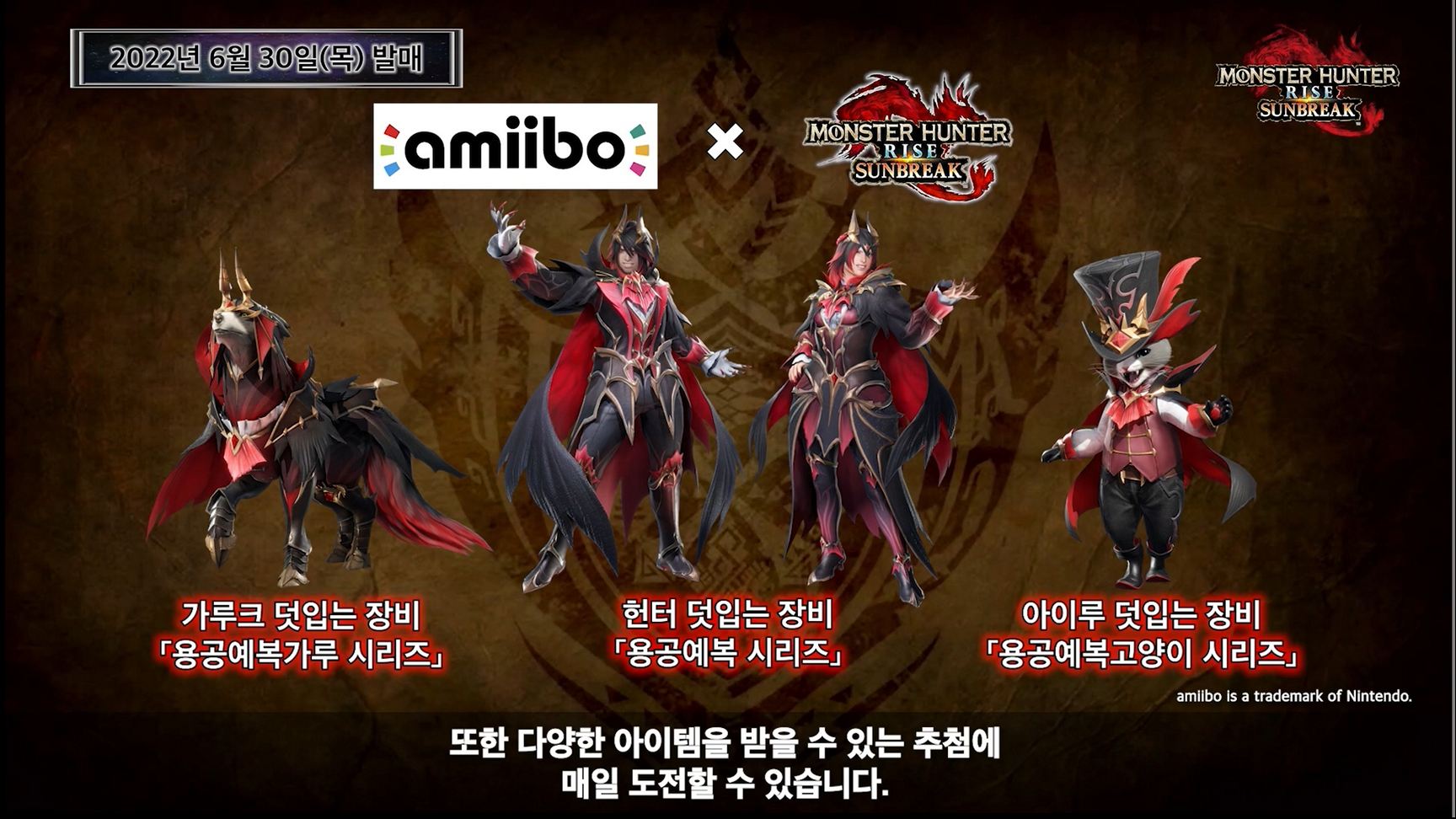 다양한 장비 아이템을 받을 수 있는 스위치용 아미보 3종류도 같은 날 발매.