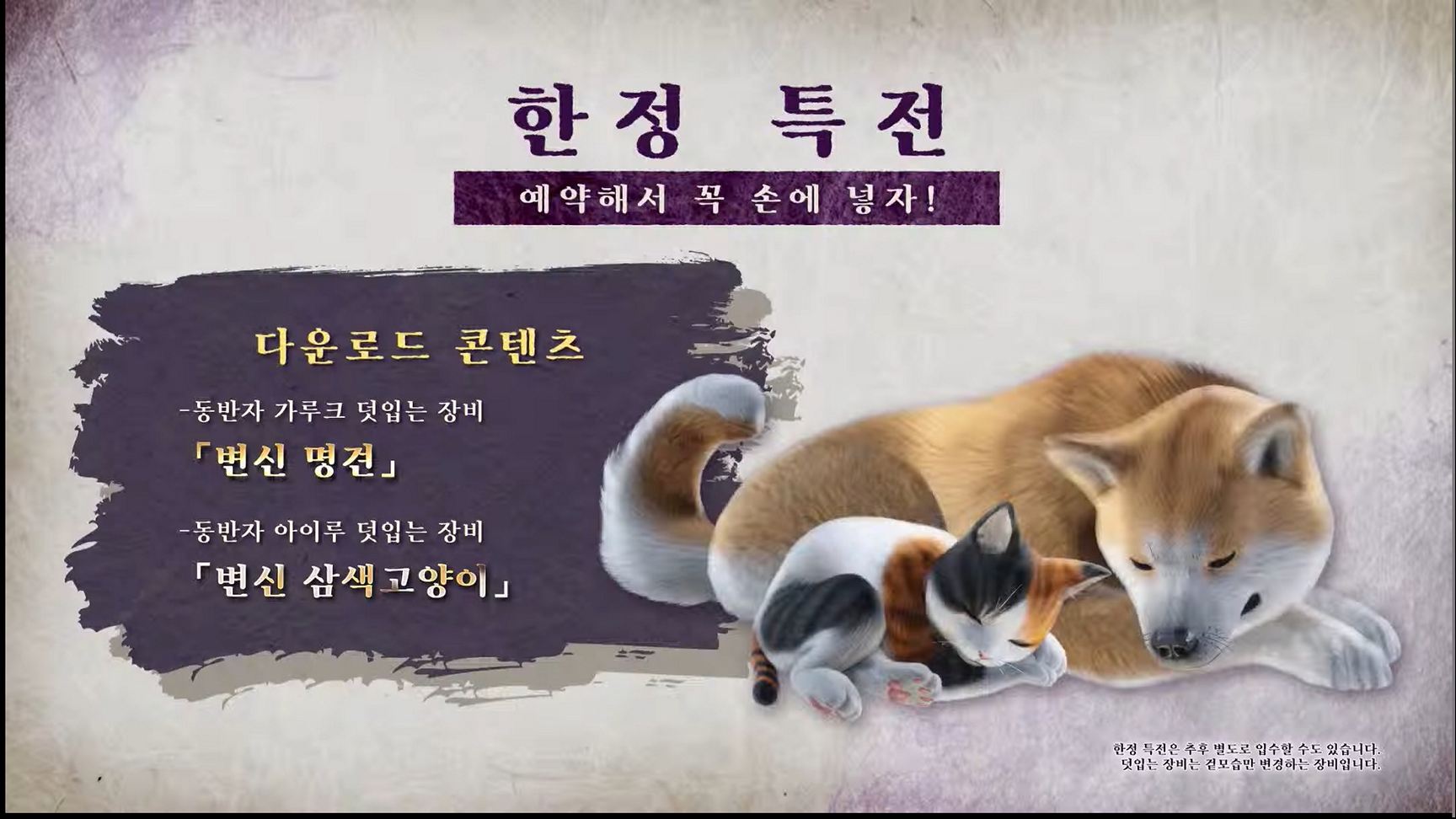 | 한정 특전 | • '동반자 가루크'와 '동반자 아이루'의 덧입는 장비 |