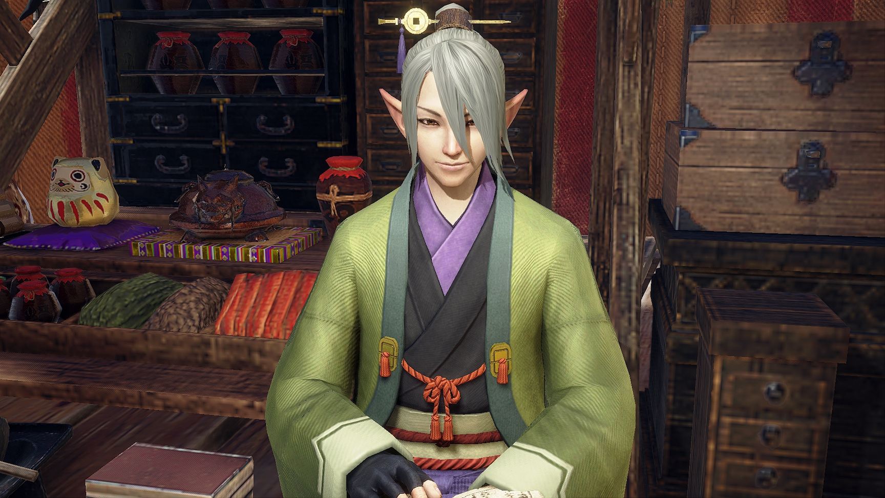 - 잡화점 오보로 - 관측 거점 엘가도의 잡화점을 운영하는 용인족 남성. 차분한 성격이지만, 종종 소년스러운 일면을 보이기도 한다. 아이템을 비롯한 지식이 매우 풍부하며 지식을 더 쌓기 위해 독서에 몰두할 때가 많은 등 탐구심이 강하다.
