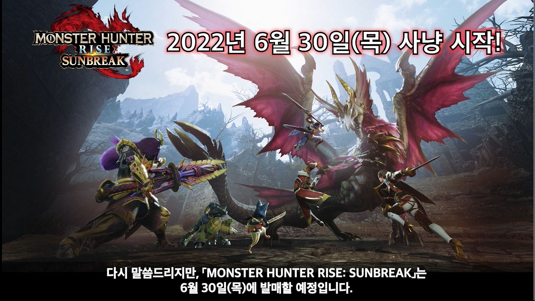 캡콤은 몬스터 헌팅 액션 '몬헌 라이즈'의 초대형 확장 컨텐츠 < 몬스터 헌터 라이즈: 선브레이크 >를 2022년 6월 30일 Switch, PC(스팀)으로 출시한다고 밝혔고 새로운 트레일러를 공개, 각 플랫폼에서 다운로드판 예약도 시작했습니다.
