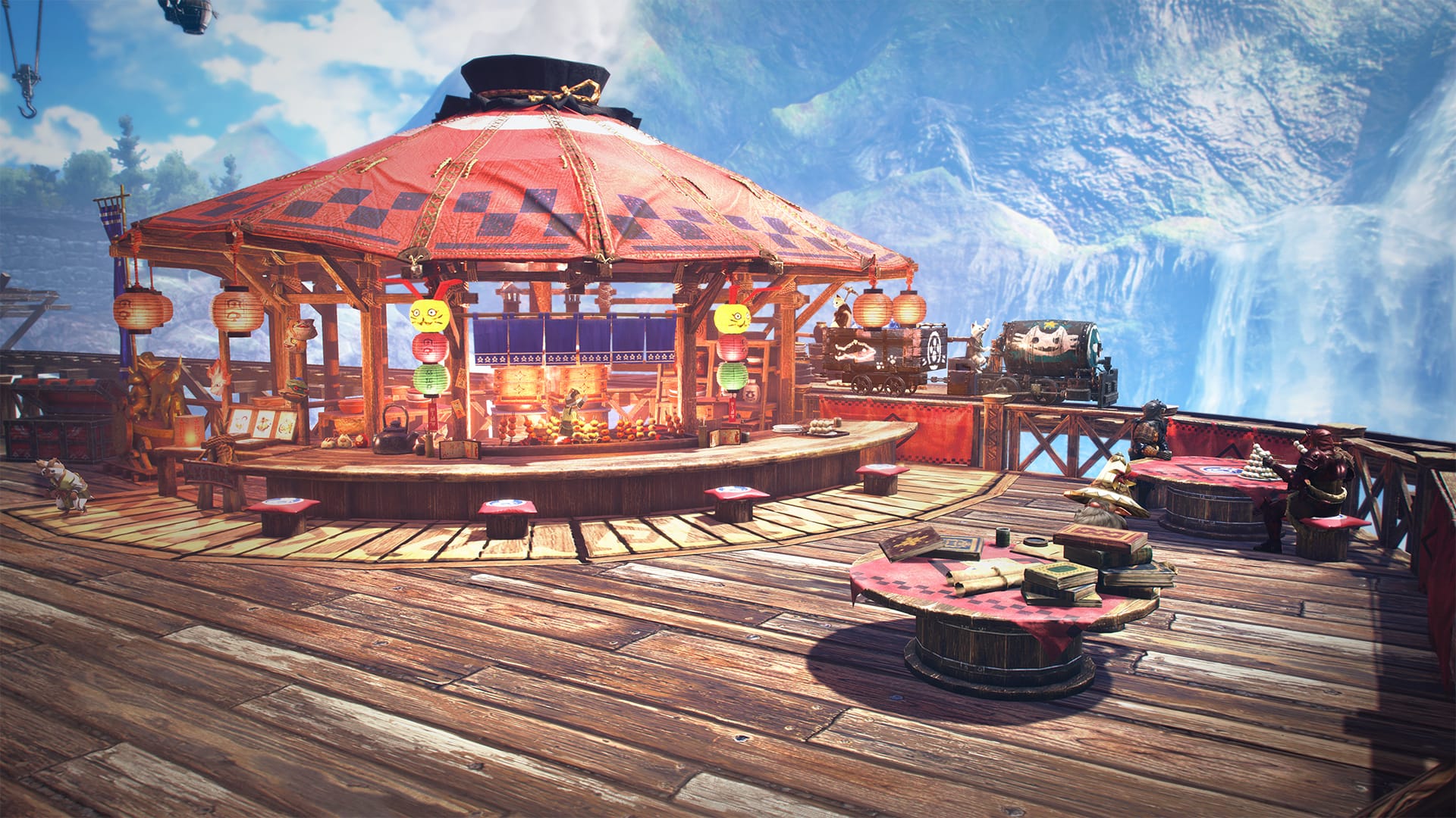- 교역을 위한 항구 마을로서의 측면을 갖고 있으며, 몬스터를 조사하는 시설은 물론이고 헌터의 사냥 생활에 필요한 시설은 전부 갖추었다. 카무라 마을의 단골 찻집도 출장 중이며 이용할 수 있는 모양.