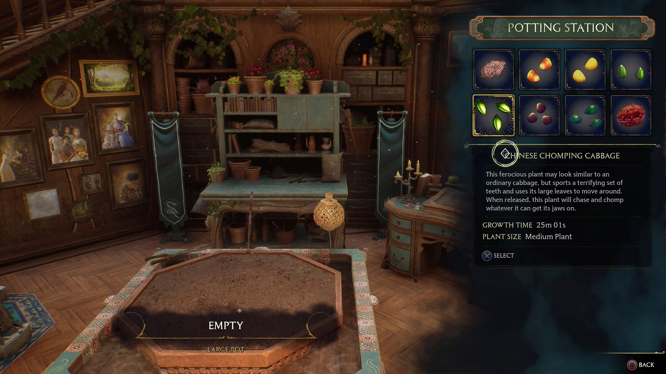 - 마법의 약, 약초, 동물 - 마법만이 전투에서 자유롭게 사용할 수 있는 도구는 아닙니다. 전장에서 떼 지어 공격하고 적을 가까이 오지 못하게 하는 신비한 식물을 기르고 배치하거나, 의심하지 않는 적을 무력화하기 위해 치명적인 맨드레이크 묘목을 풀 수도 있습니다. 동물 수업에서는 학교에서 혹은 성/부지를 둘러싼 세계를 여행하면서 만날 수 있는 다양한 마법 동물에 대해 배울 수 있습니다.