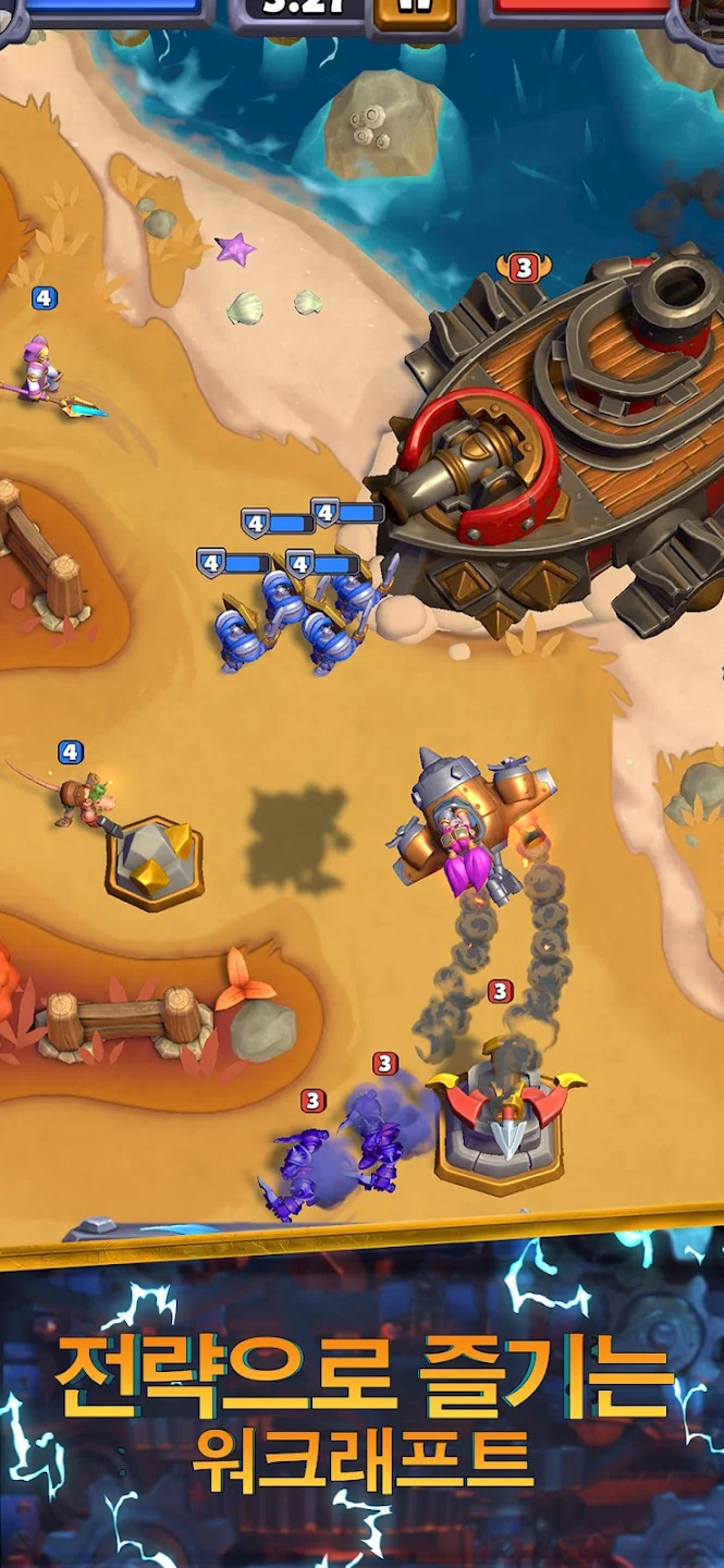 - 2. 전장을 장악하라 - 경비탑과 만남의 돌 등의 목표물을 점령하고, 이를 활용해 미니를 목표물 가까이에 배치할 수 있습니다. 전장을 장악하고 주도권을 잡는 것이 핵심입니다!