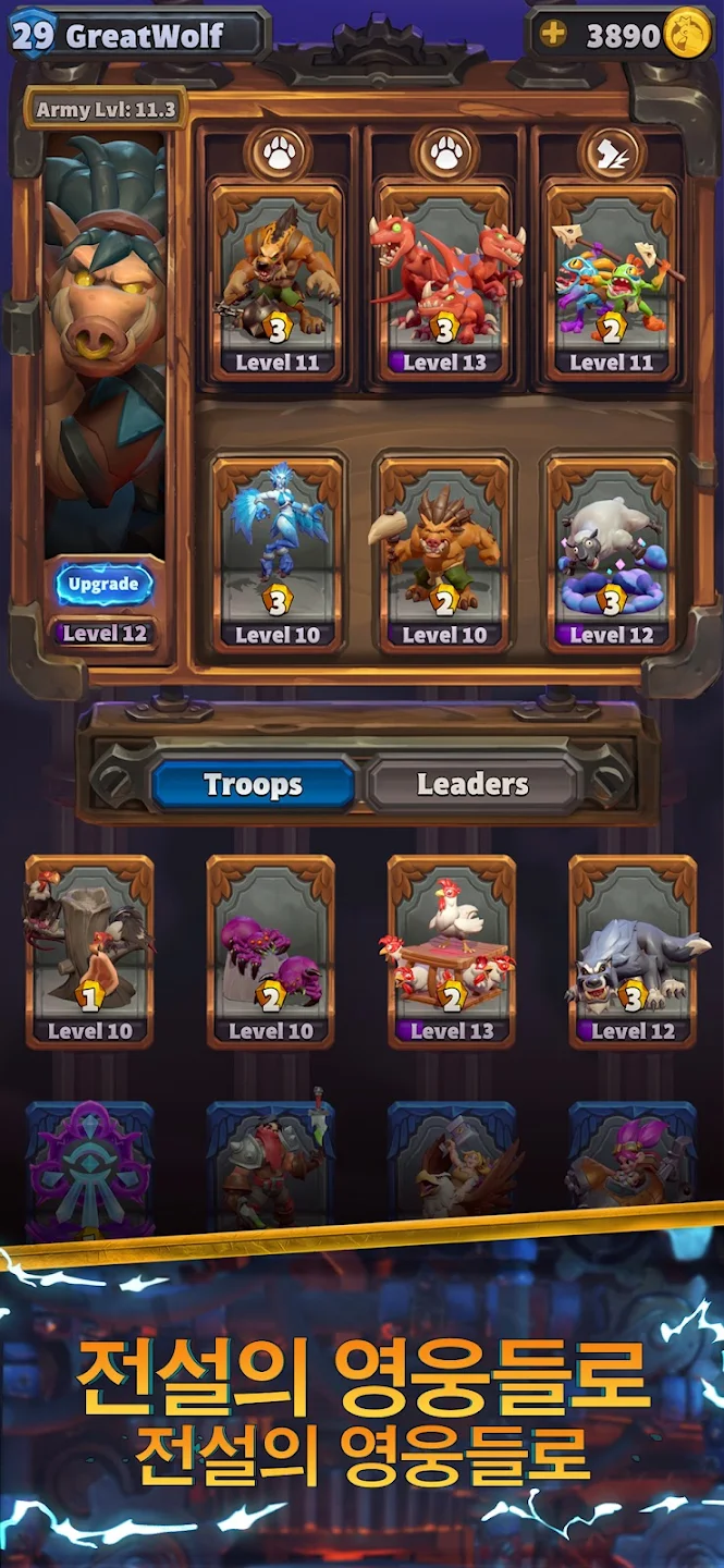 - 임무와 퀘스트를 완료해 코인을 모으고 병력을 성장시키세요. 코인으로 미니, 특성, 경험치, 고서를 구매하여 전력을 더욱더 강화할 수 있습니다.