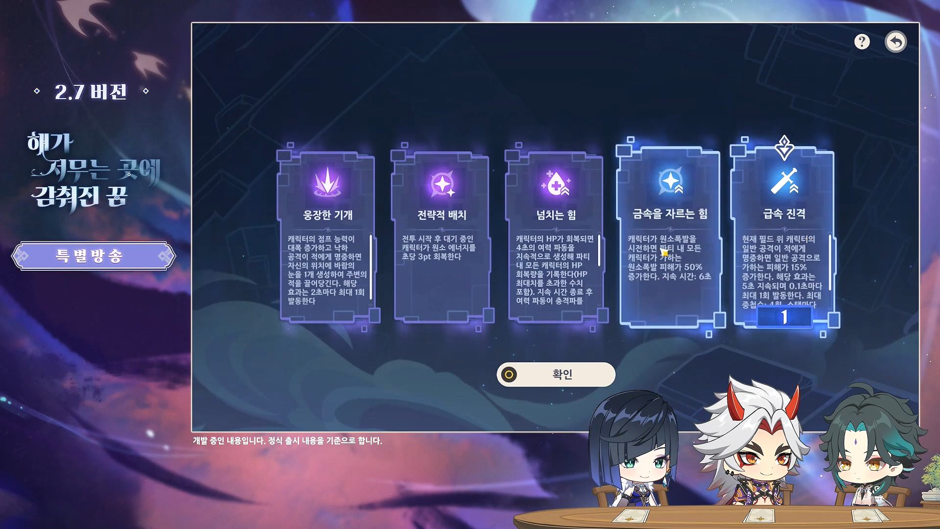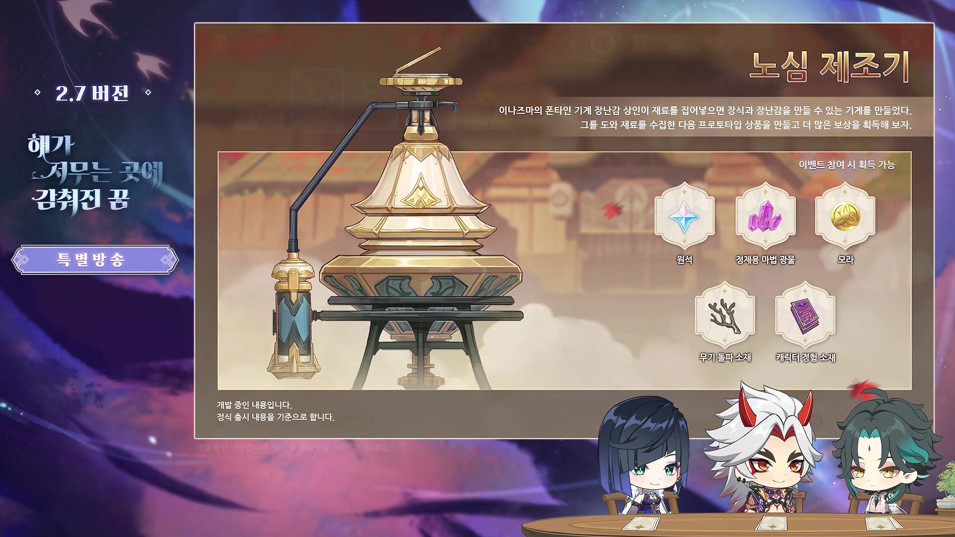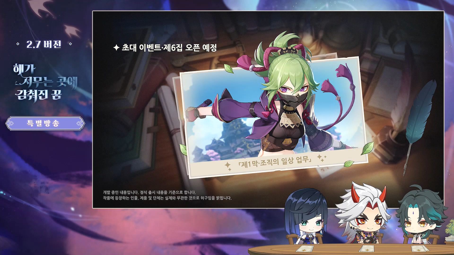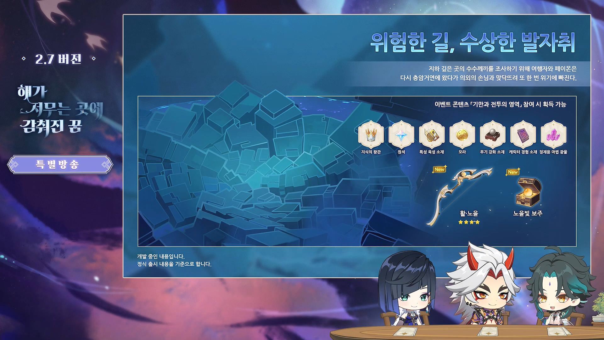 | 원신 2.7ver - "해가 저무는 곳에 감춰진 꿈" |