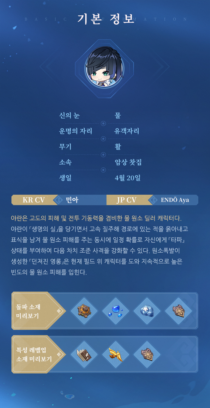 ★5 유곡에 피어난 난초, 야란(신의 눈: 물 / 운명의 자리: 유객자리)